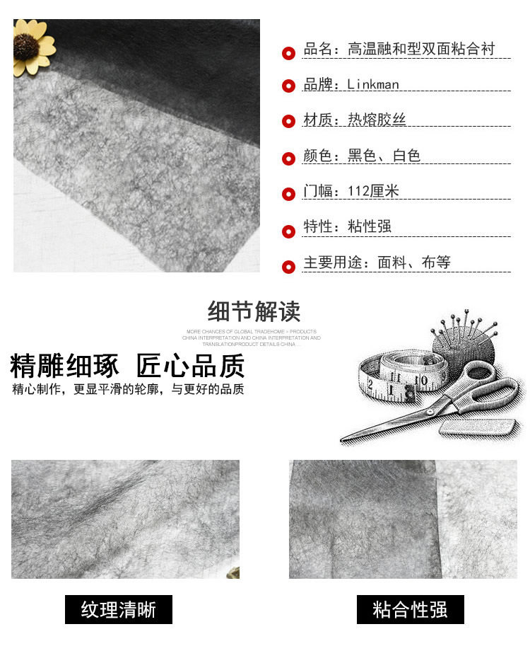 Double-sided adhesive lining non-woven fabric double-sided adhesive insert extremely thin hot melt lining DIY composite clothing accessories adhesive lining