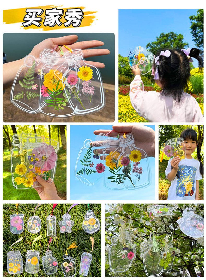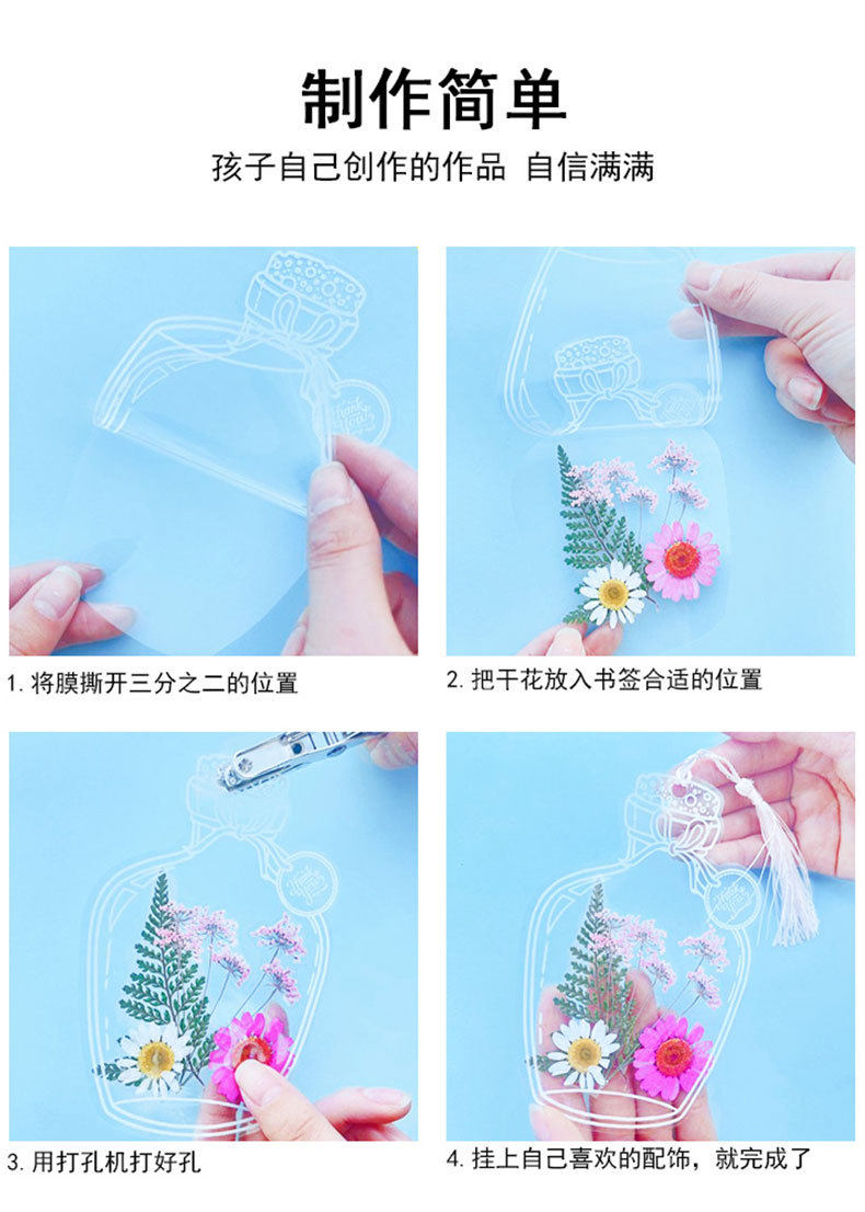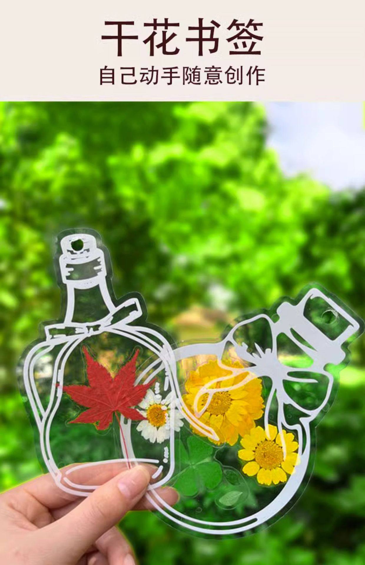 Dried Flower Bookmarks, Handmade DIY Materials, Autumn Childhood Collection Book in Bottles, Transparent Leaf Specimen Plastic Film