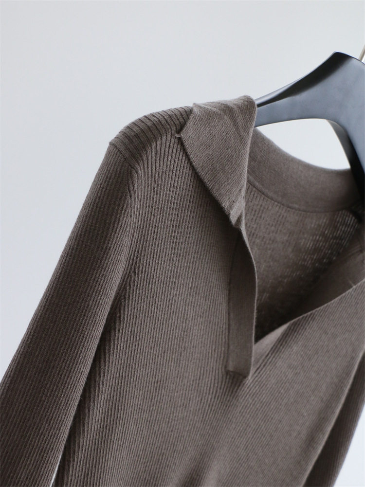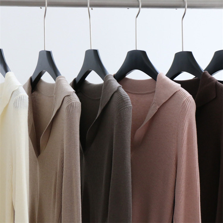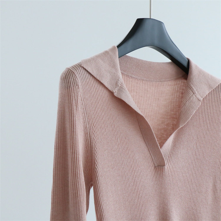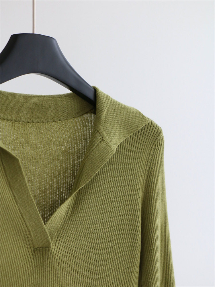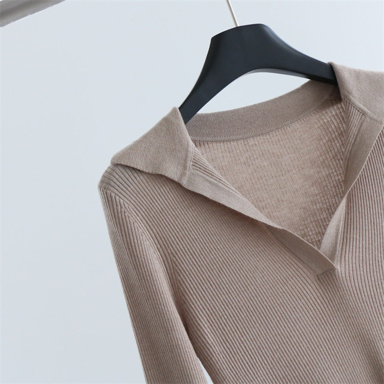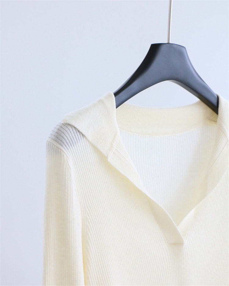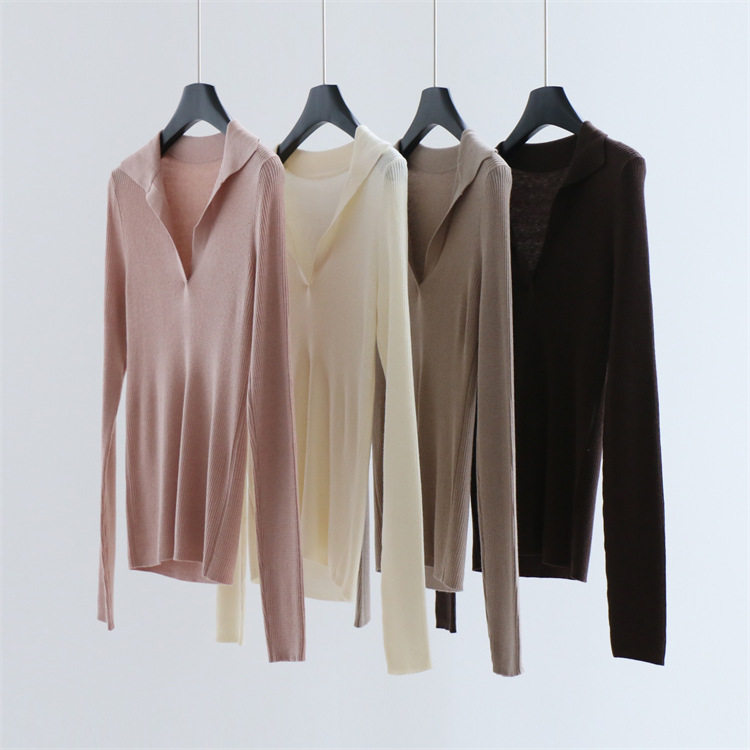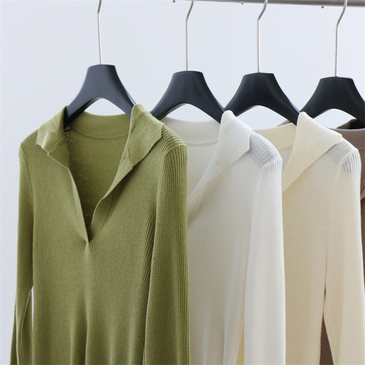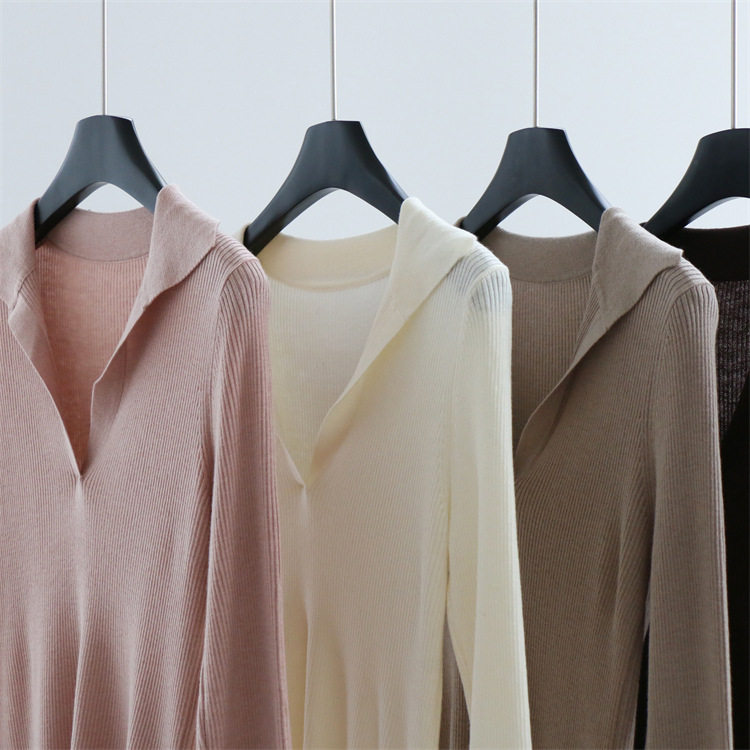 Can Stand Collar, Polo Collar, Fashionable Wool Blended Long-sleeved Knitwear, Autumn and Winter Pure Color Top, Women's Bottoming Pullover