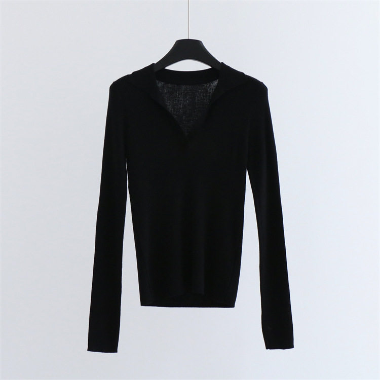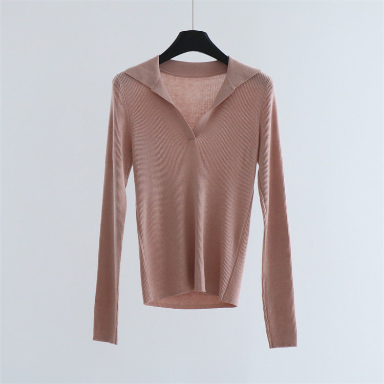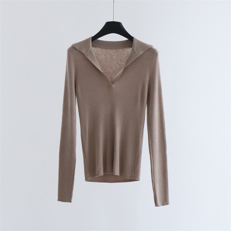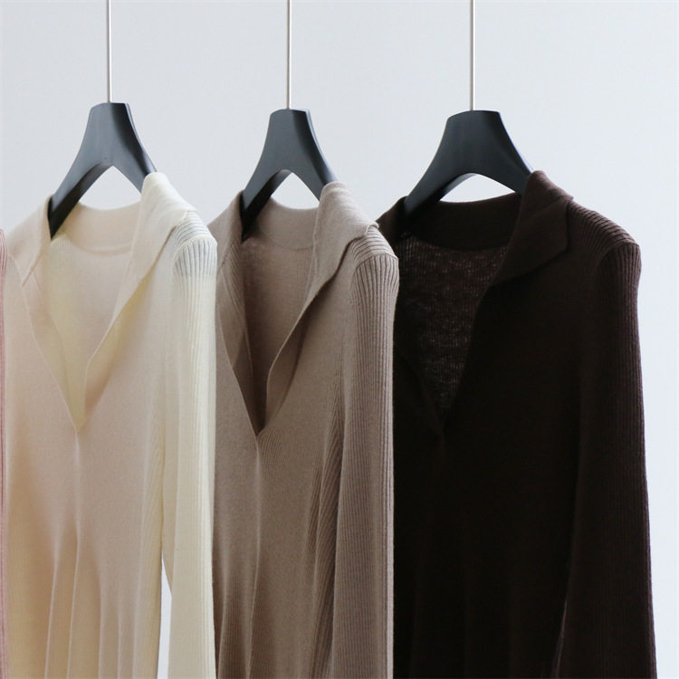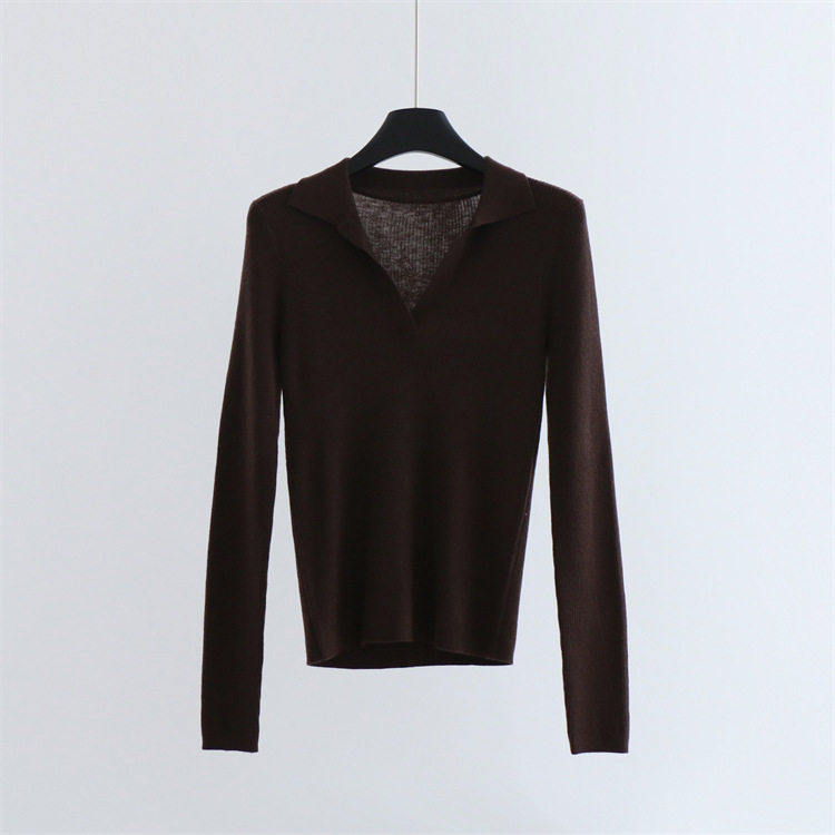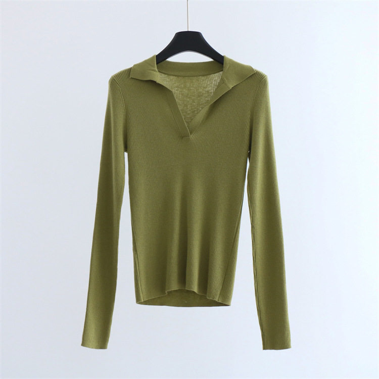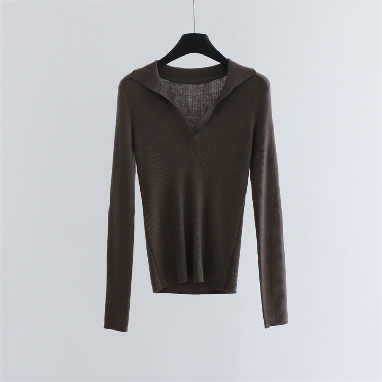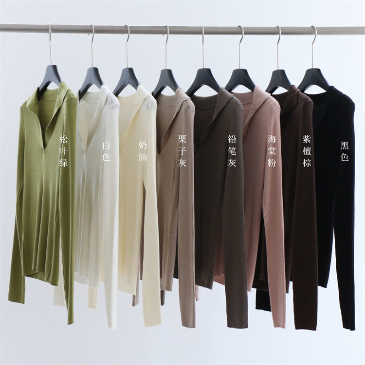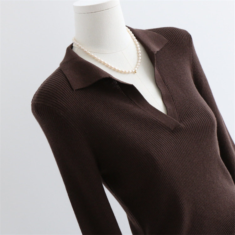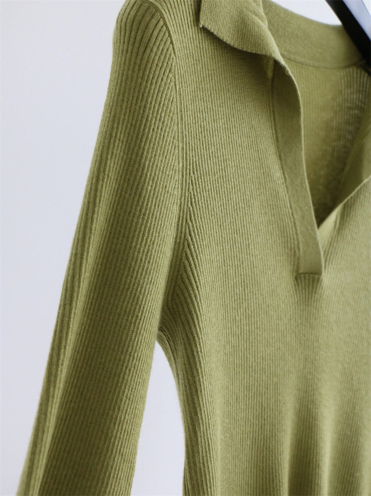 Can Stand Collar, Polo Collar, Fashionable Wool Blended Long-sleeved Knitwear, Autumn and Winter Pure Color Top, Women's Bottoming Pullover
