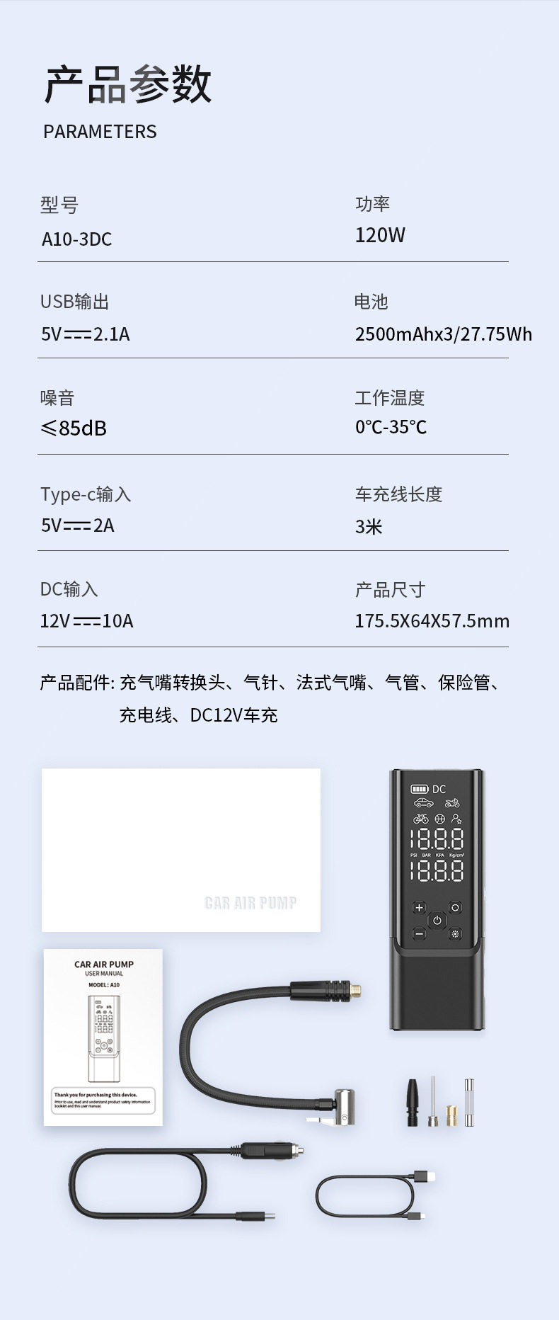 | Specifications | A10-3dc [dc cable + built-in battery] upgraded version,A10-2 [built-in battery] standard version |