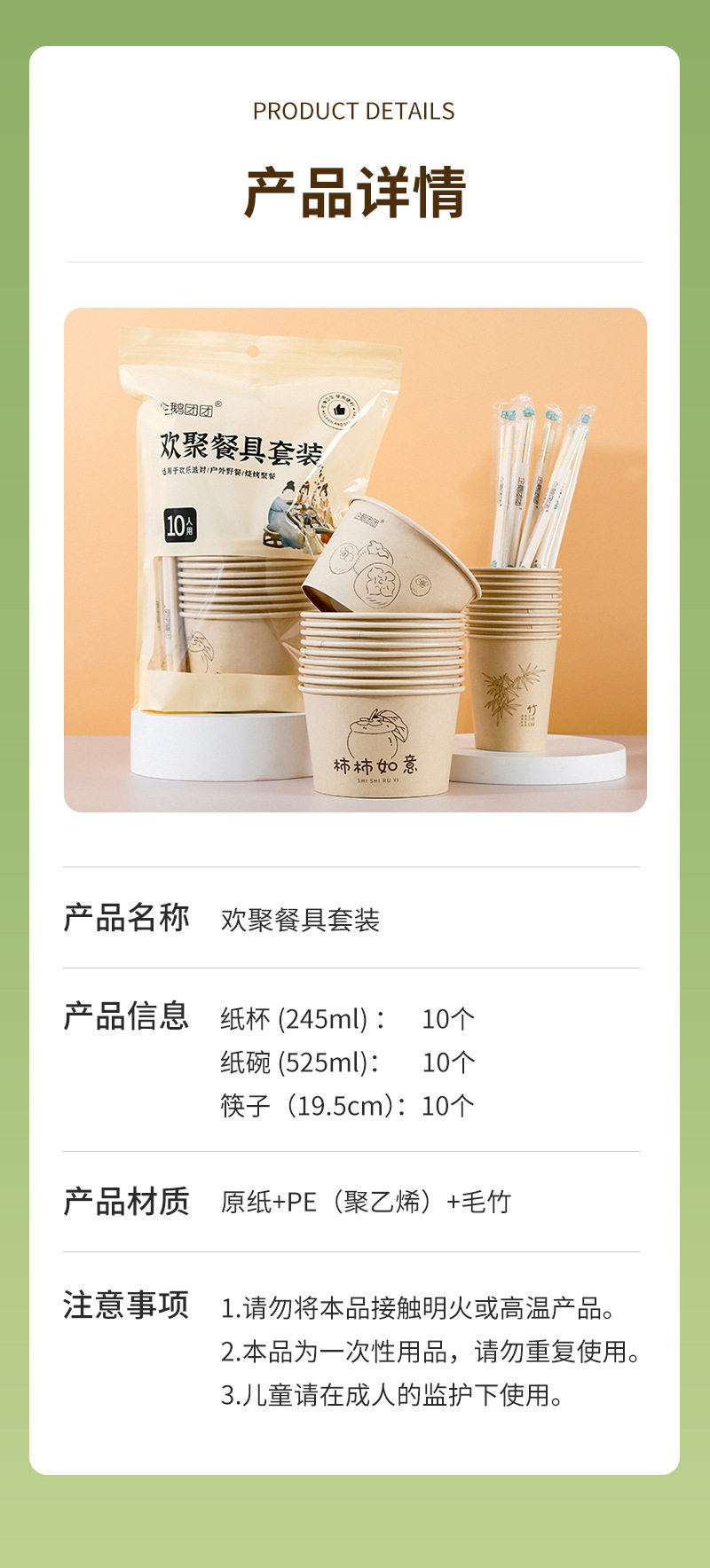 Banquet Dinner Disposable Bowl Paper Cup Chopsticks Set High Quality Bowl Chopsticks Cup Barbecue Camping Style Set Flash Sale Dropshipping
