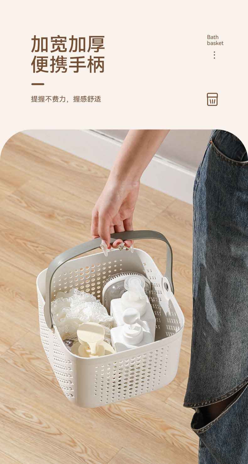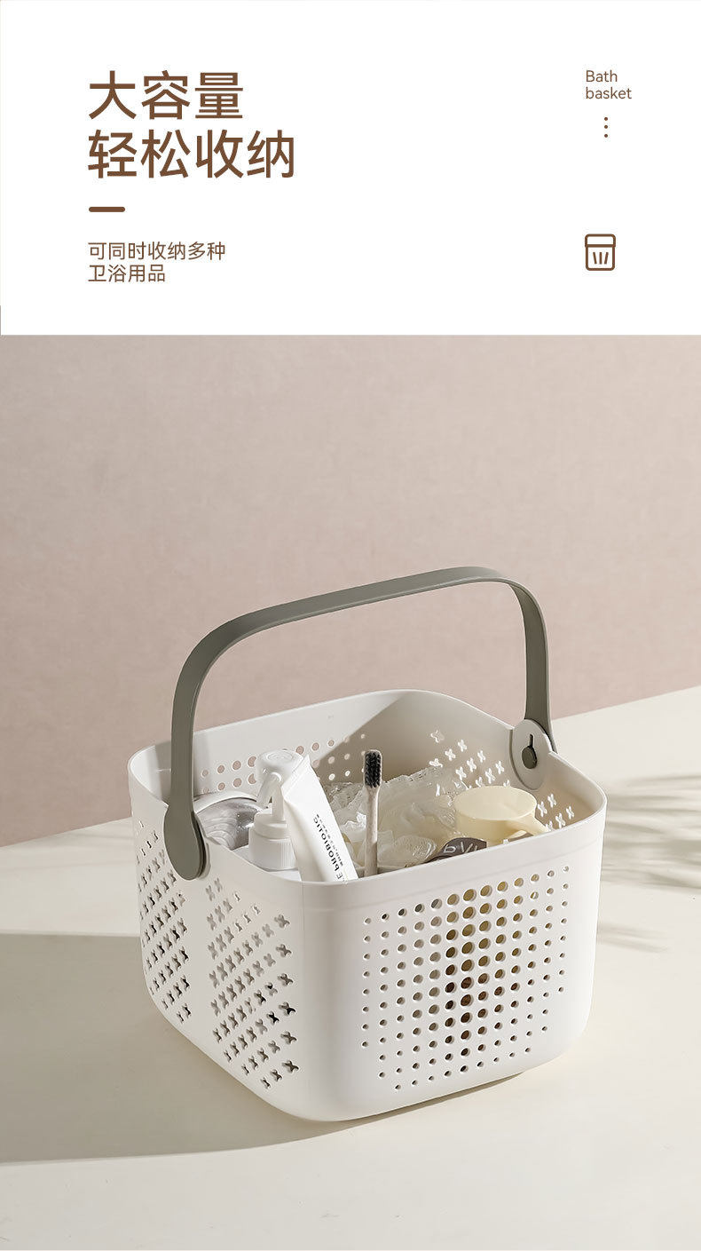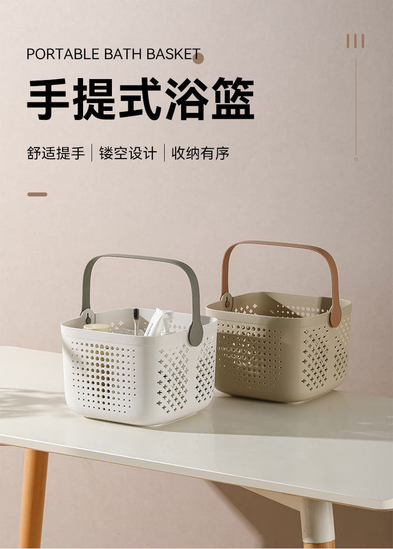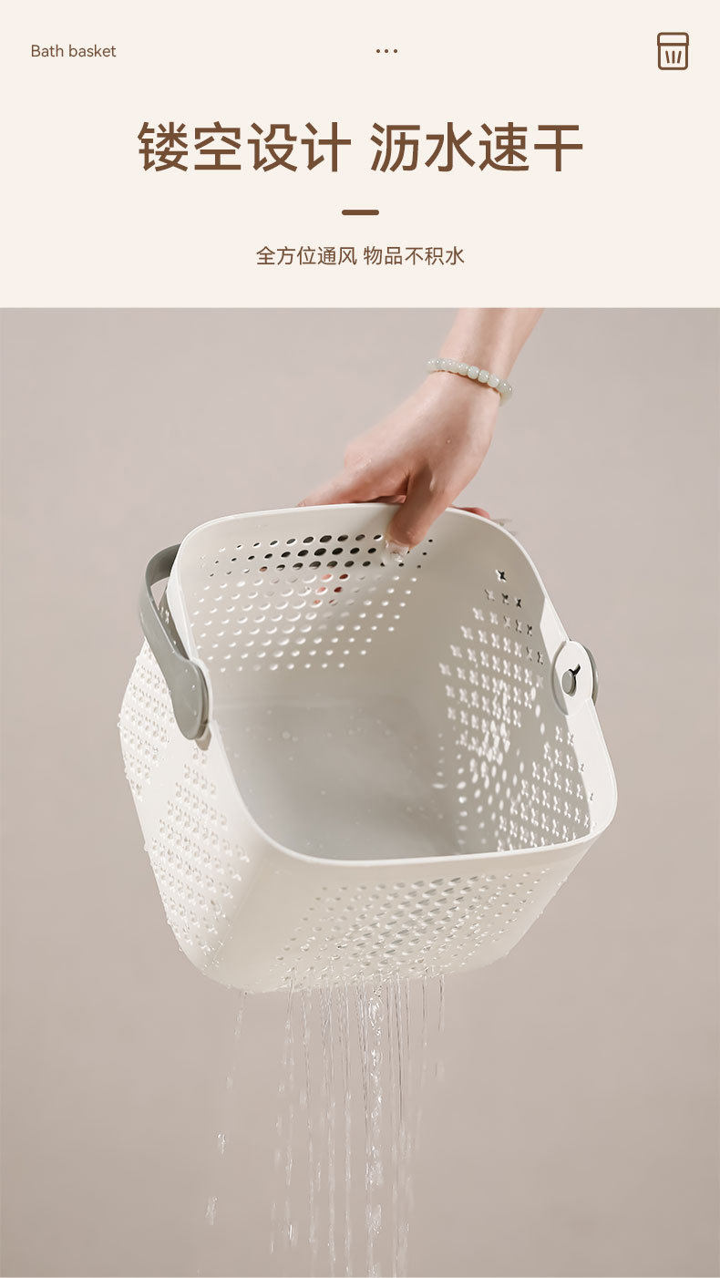 Portable bath basket bathroom washing supplies storage basket for students light luxury bath basket square draining bath basket