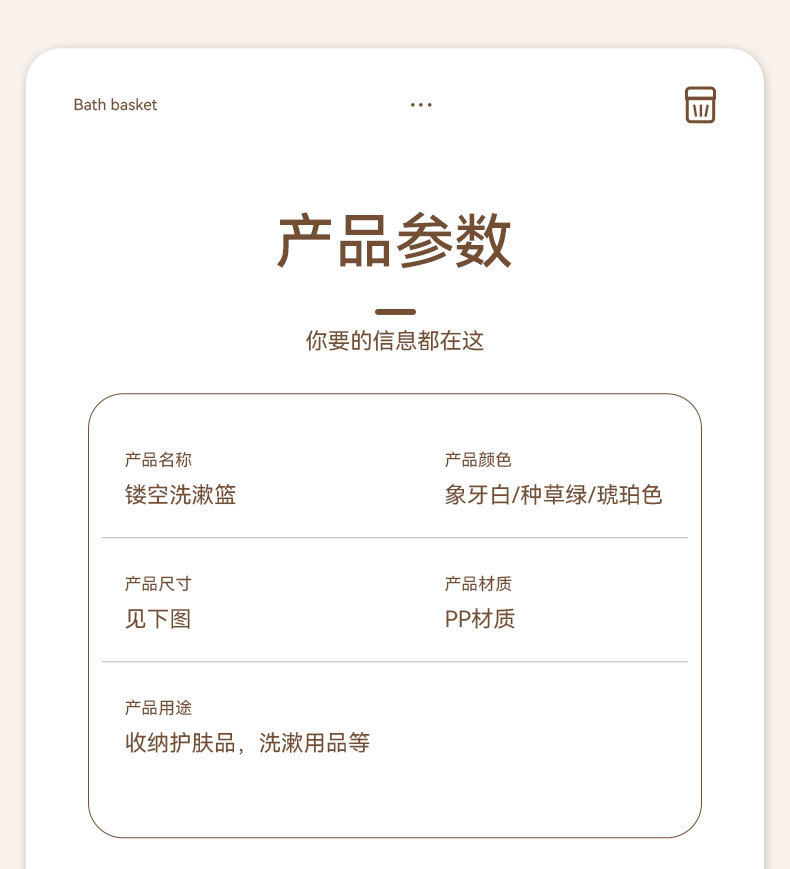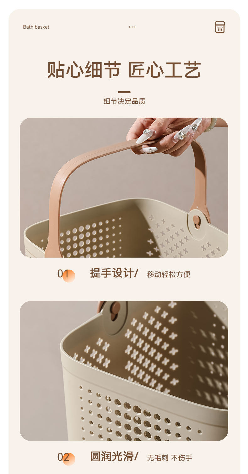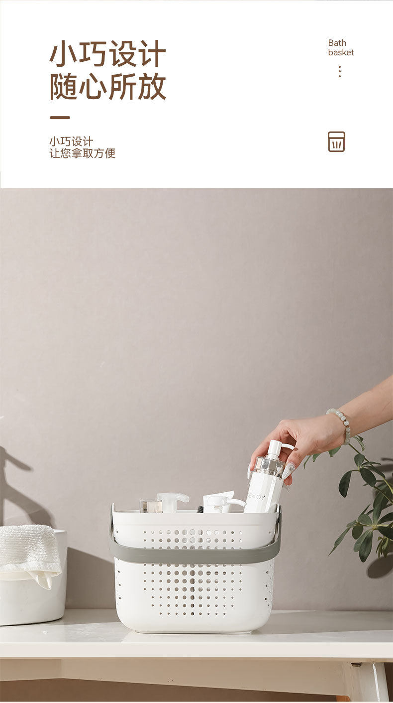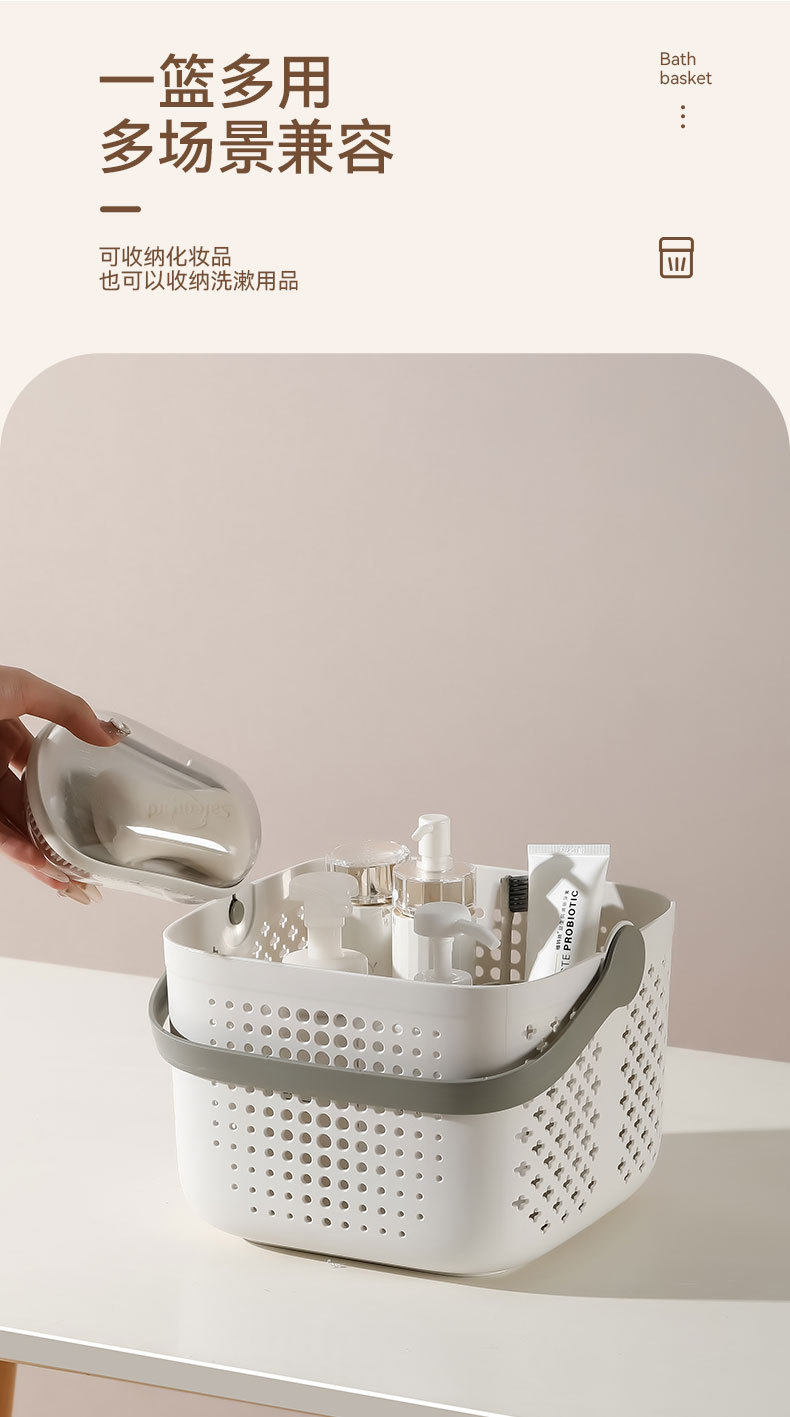 Portable bath basket bathroom washing supplies storage basket for students light luxury bath basket square draining bath basket