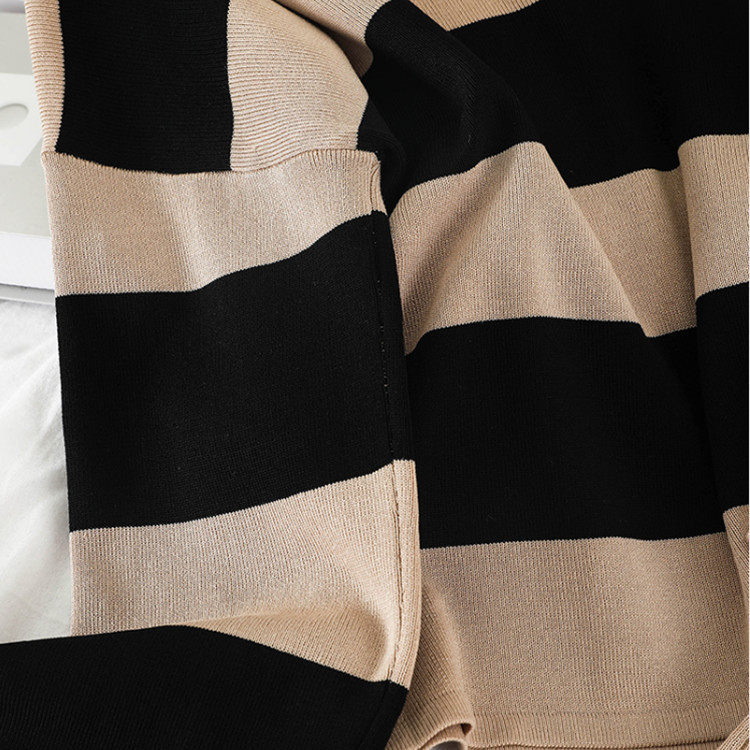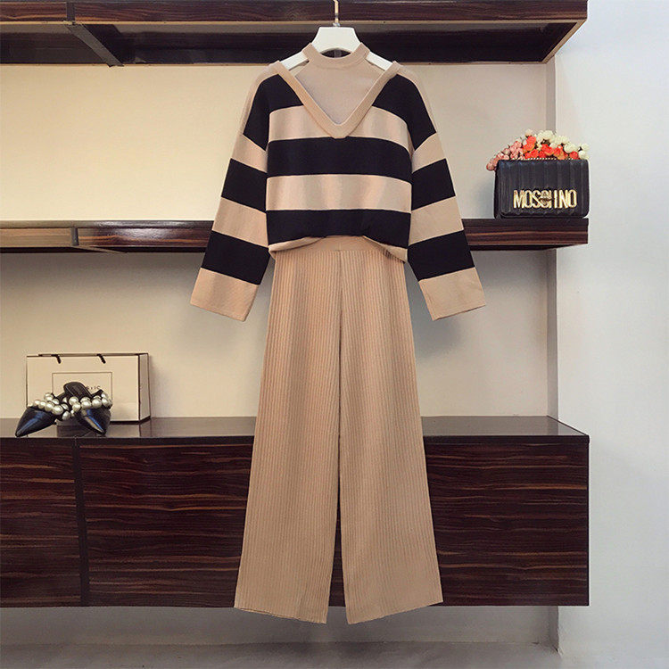 in stock Cross-border AliExpress Striped Sexy Knitwear Straight Tube Slimming Wide-leg Trousers Two-piece Set Elegant suit Women