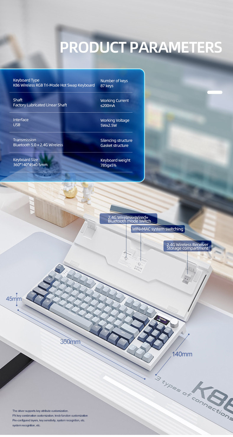 | Color | Attack shark K86 three-mode RGB keyboard business gray blue whale axis,Attack shark K86 three-mode RGB keyboard time machine blue whale axis,Attack shark K86 three-mode RGB keyboard lavender blue whale axis |