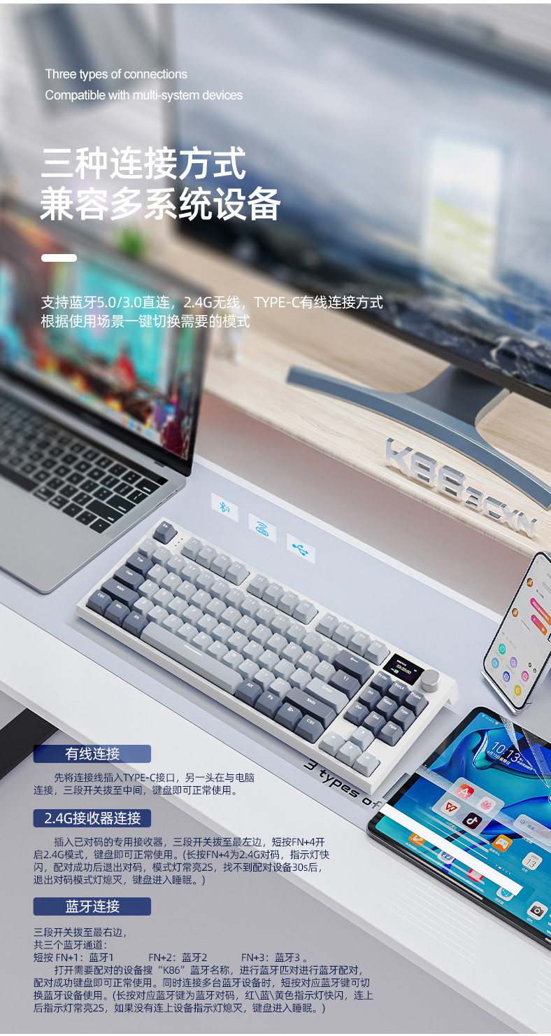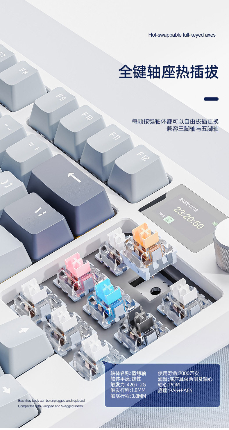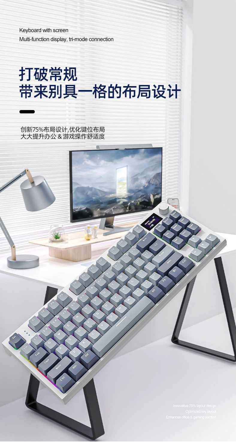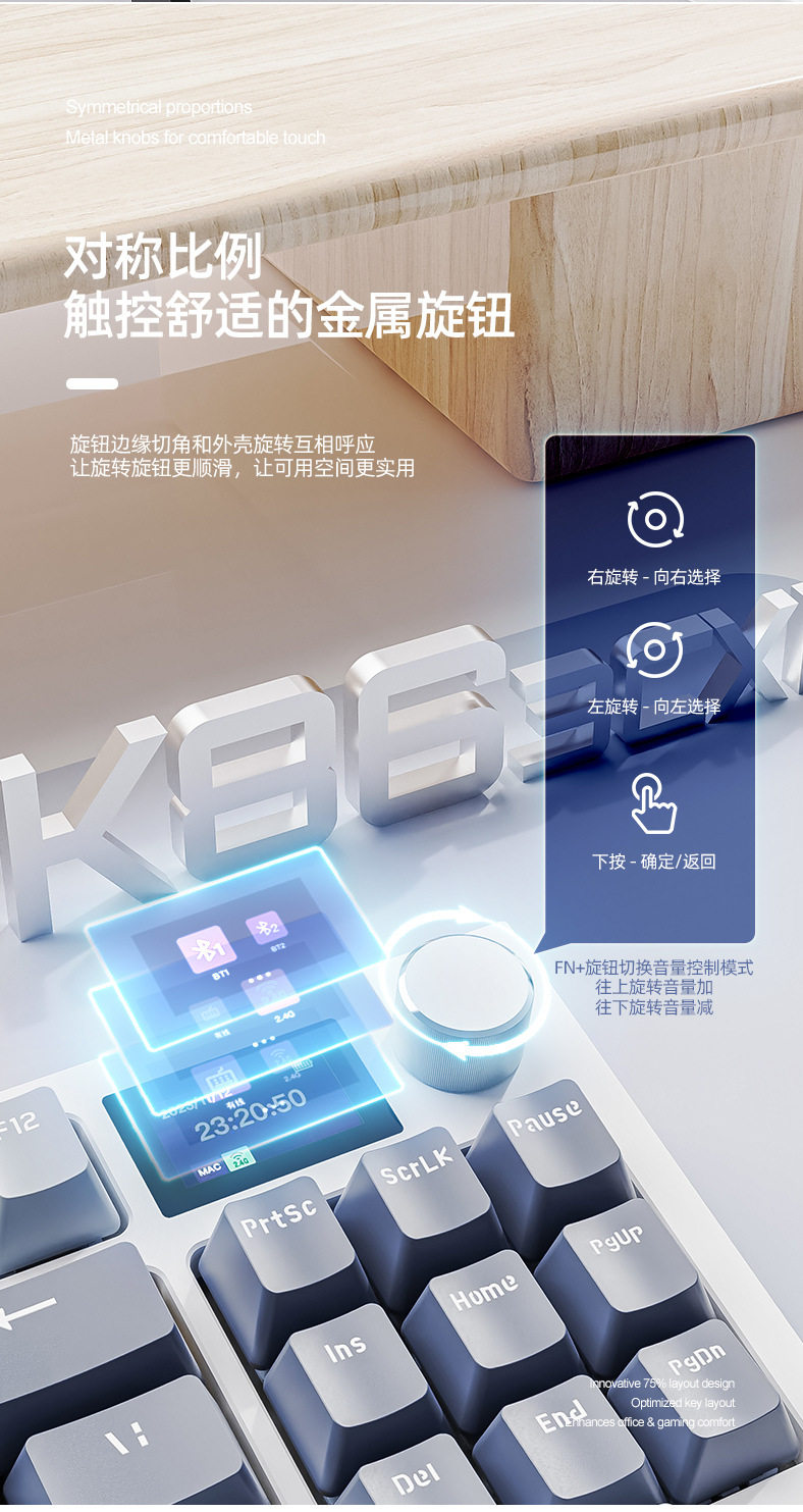 Attack shark K86 three-mode RGB Bluetooth 2.4G wired light-emitting display customized hot-swappable mechanical keyboard