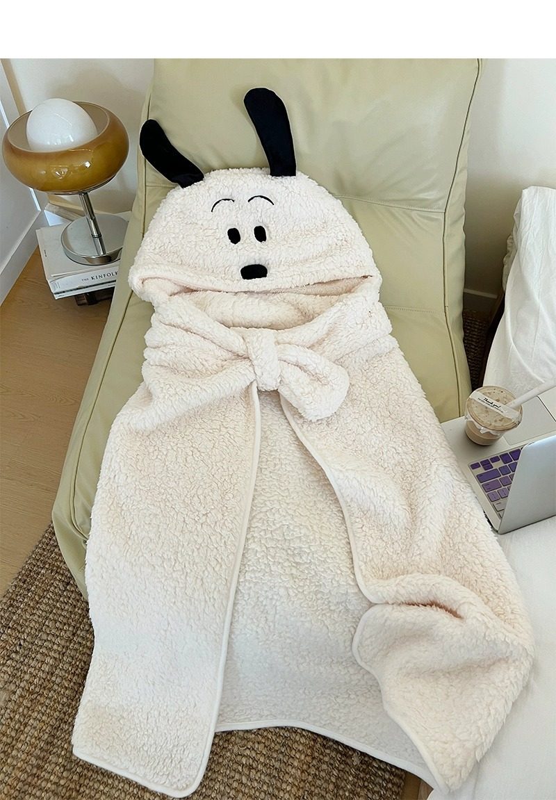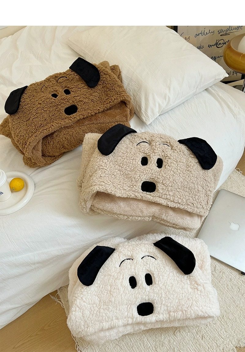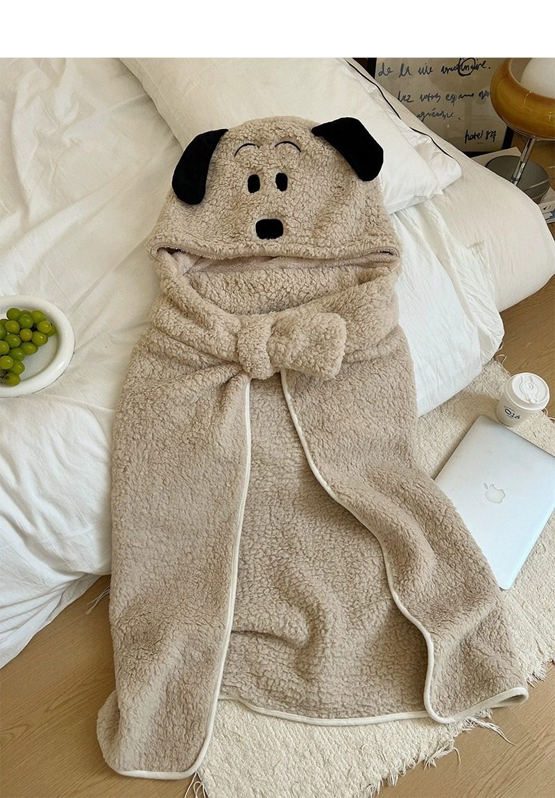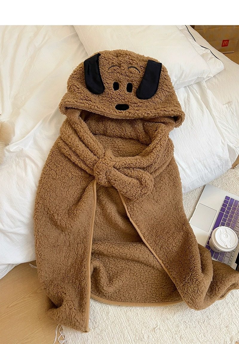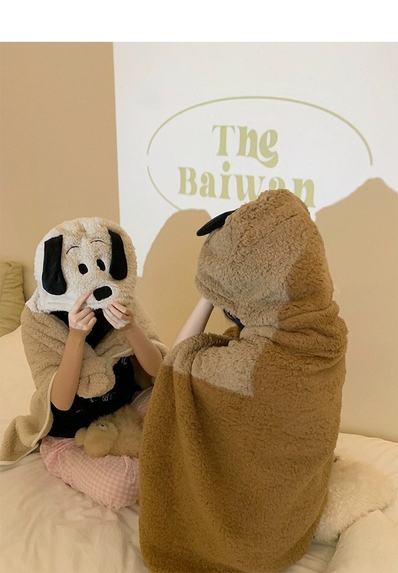 Cartoon puppy blanket autumn and winter thickened shawl office nap warm plush hooded blanket cute Cape fashion