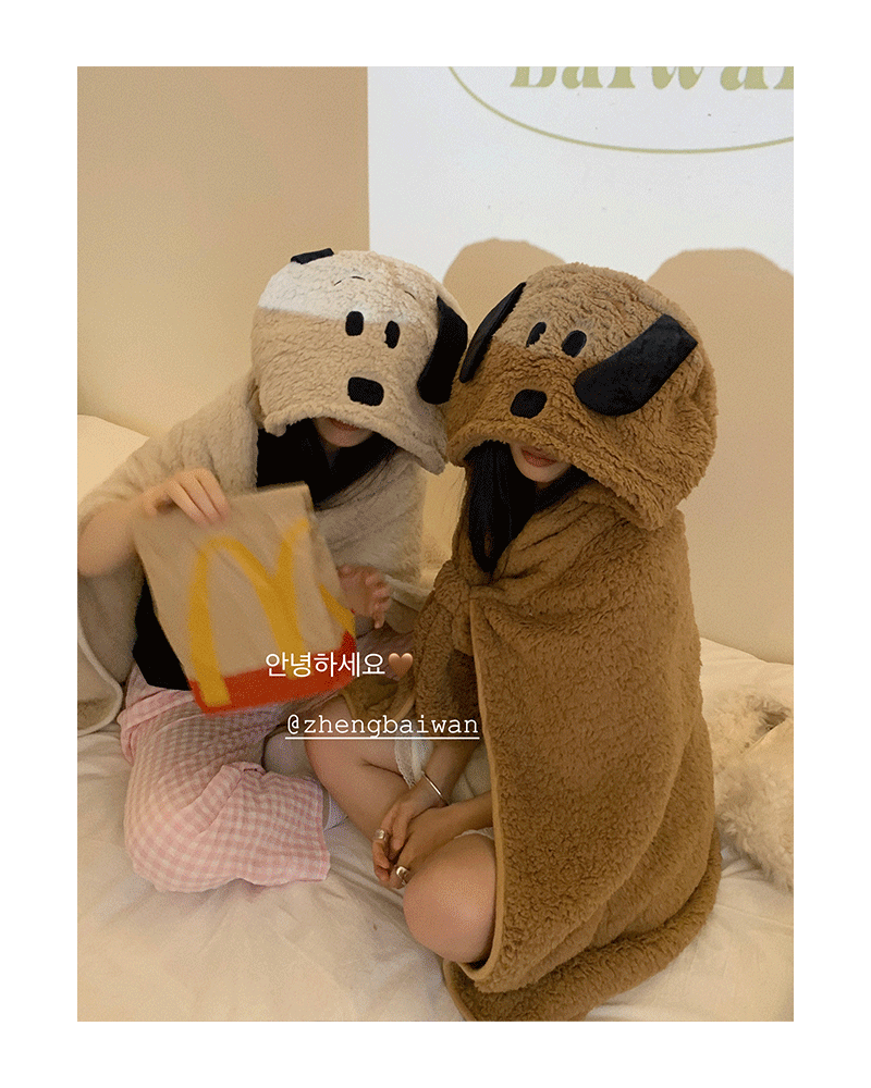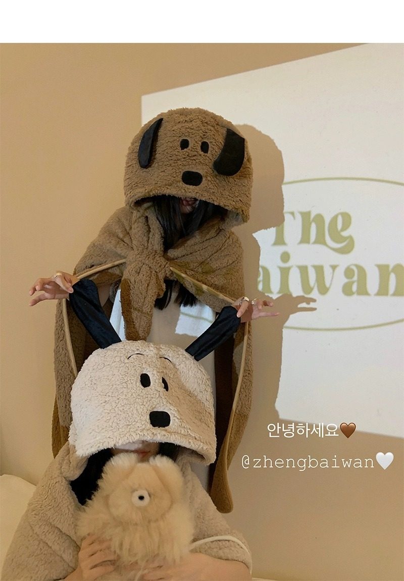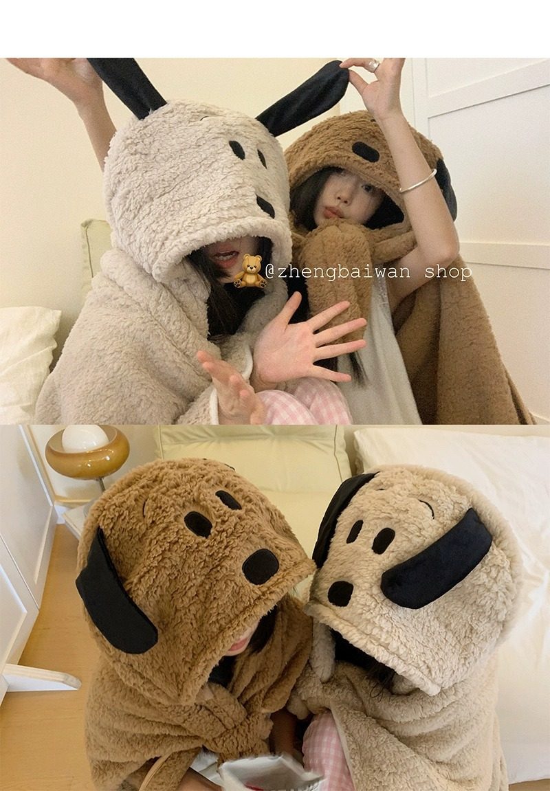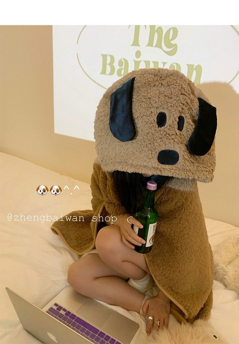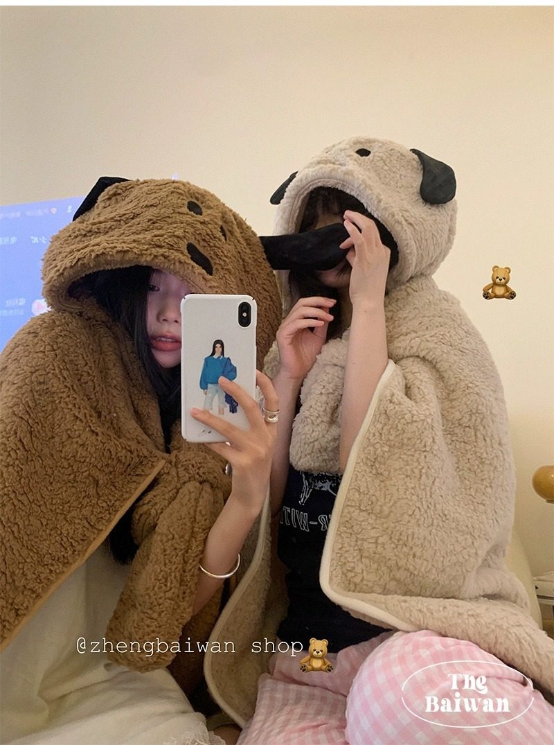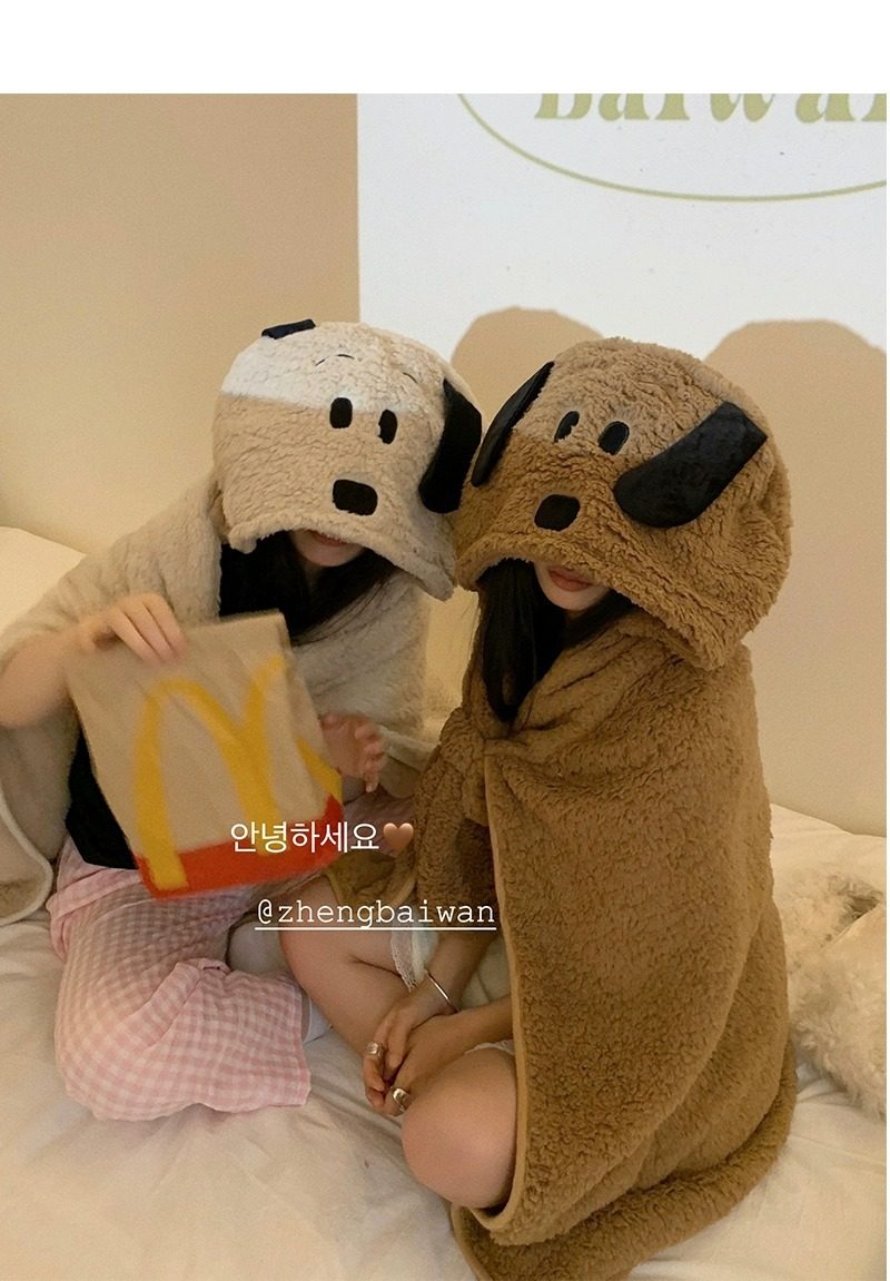 Cartoon puppy blanket autumn and winter thickened shawl office nap warm plush hooded blanket cute Cape fashion