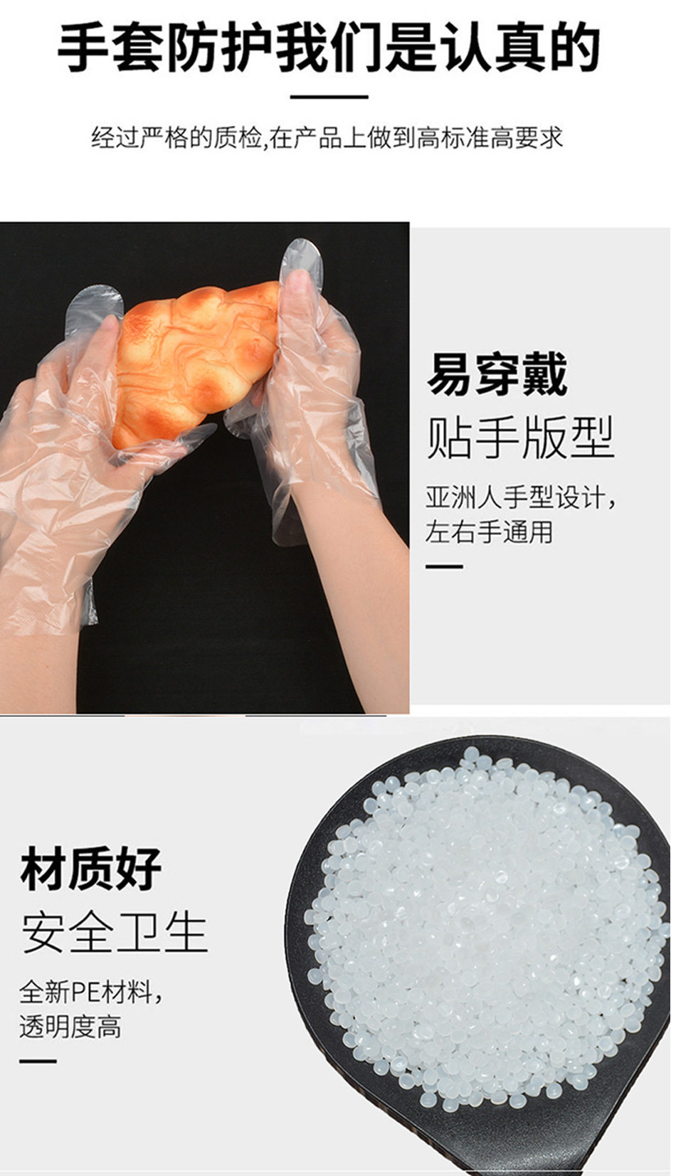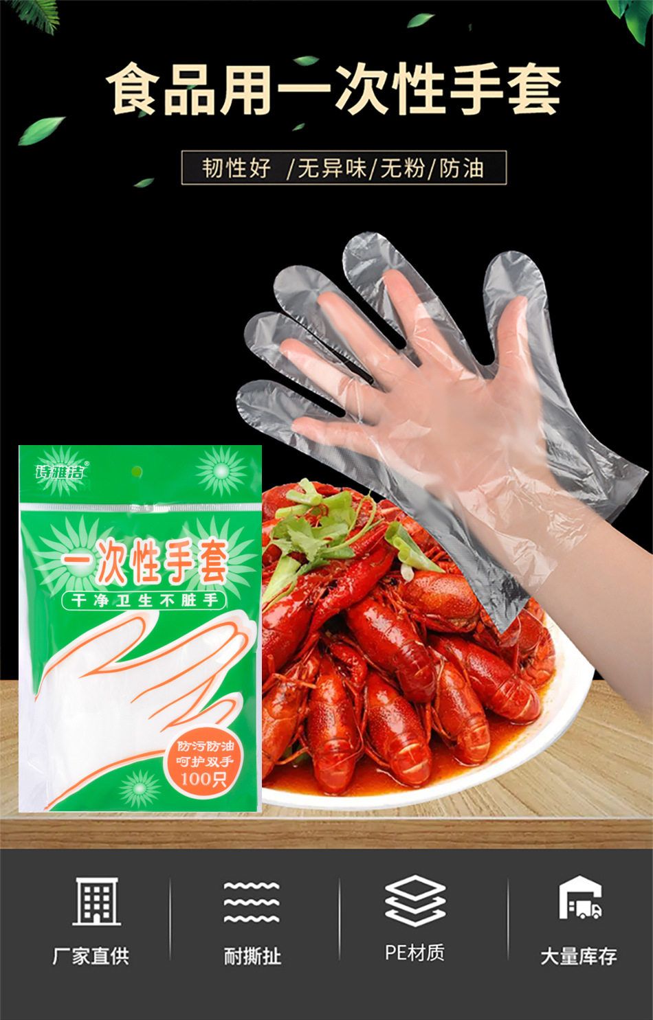 Disposable gloves food grade takeaway thickened pe kitchen crayfish beauty film children transparent dining household