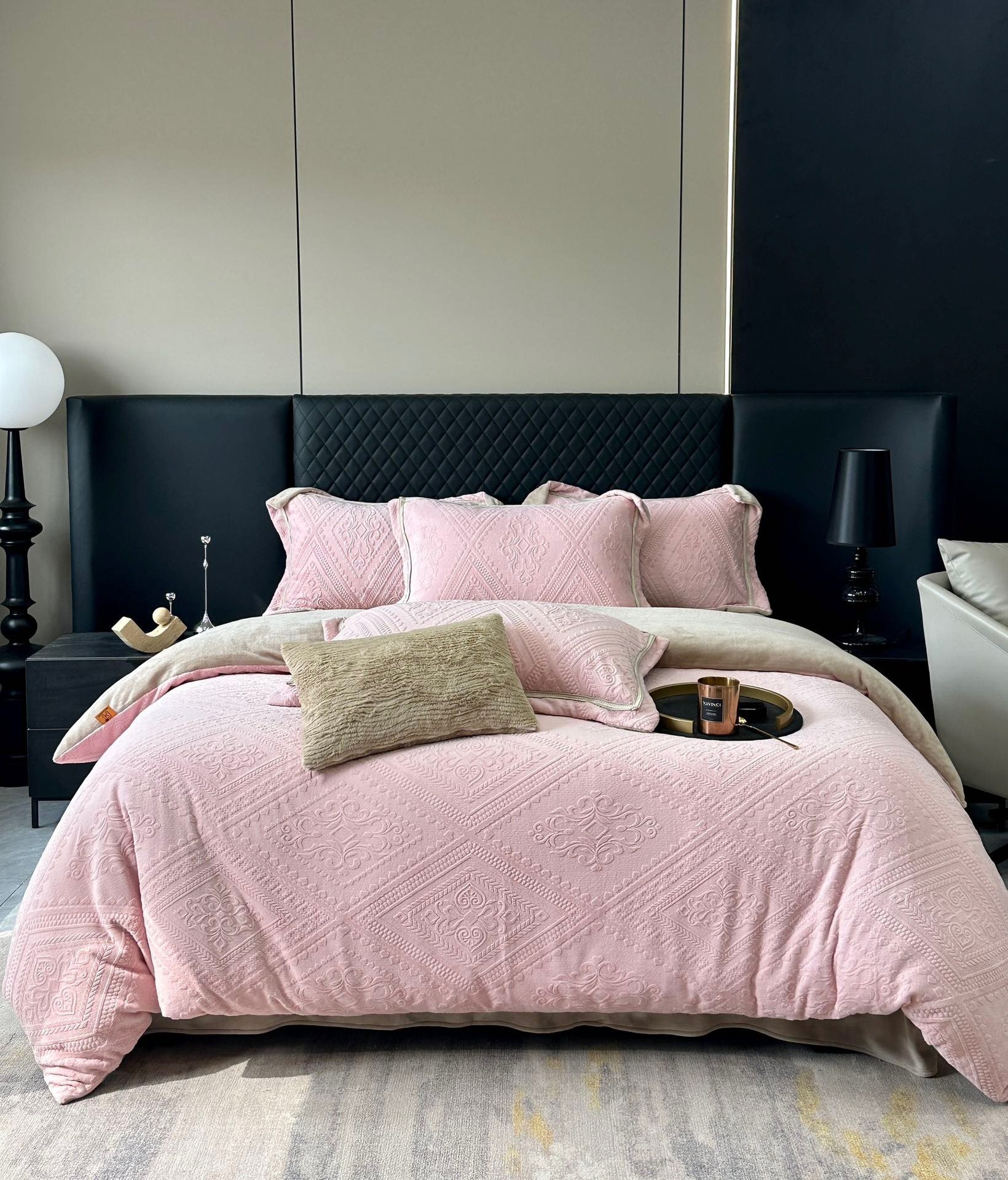 Winter thickened milk velvet four-piece set double-sided warm coral velvet three-piece set flannel single quilt cover fitted sheet wholesale