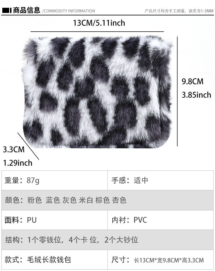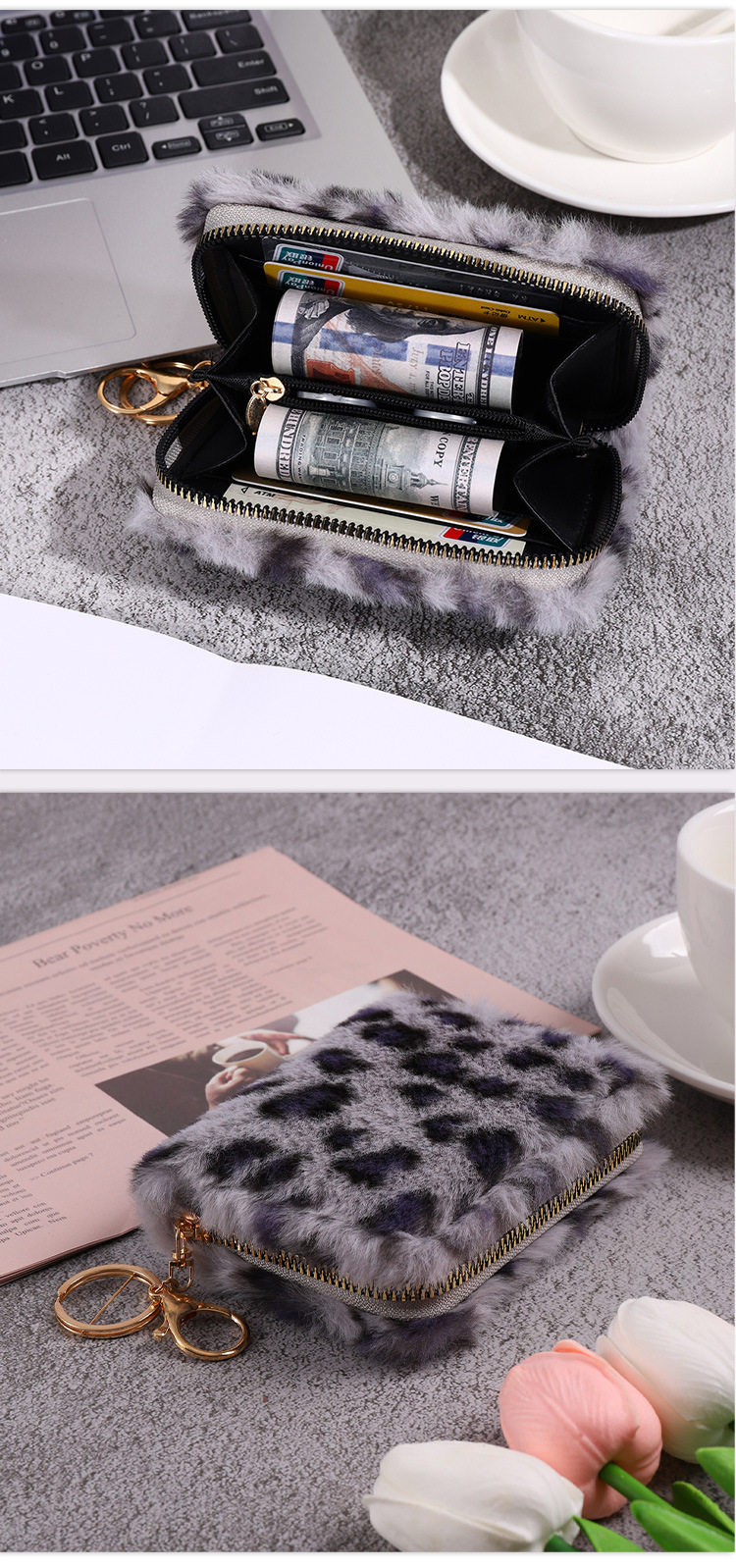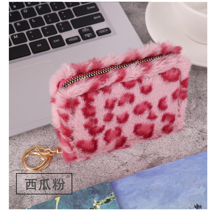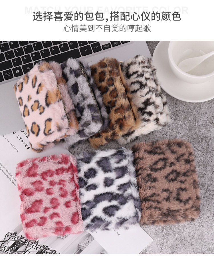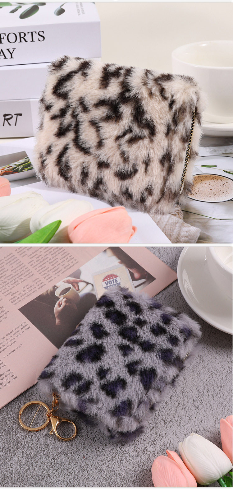 Cross-Border New Plush Coin Purse, Fashionable Leopard Print Wallet, Niche Simple Bag, Furry Card Bag Manufacturer