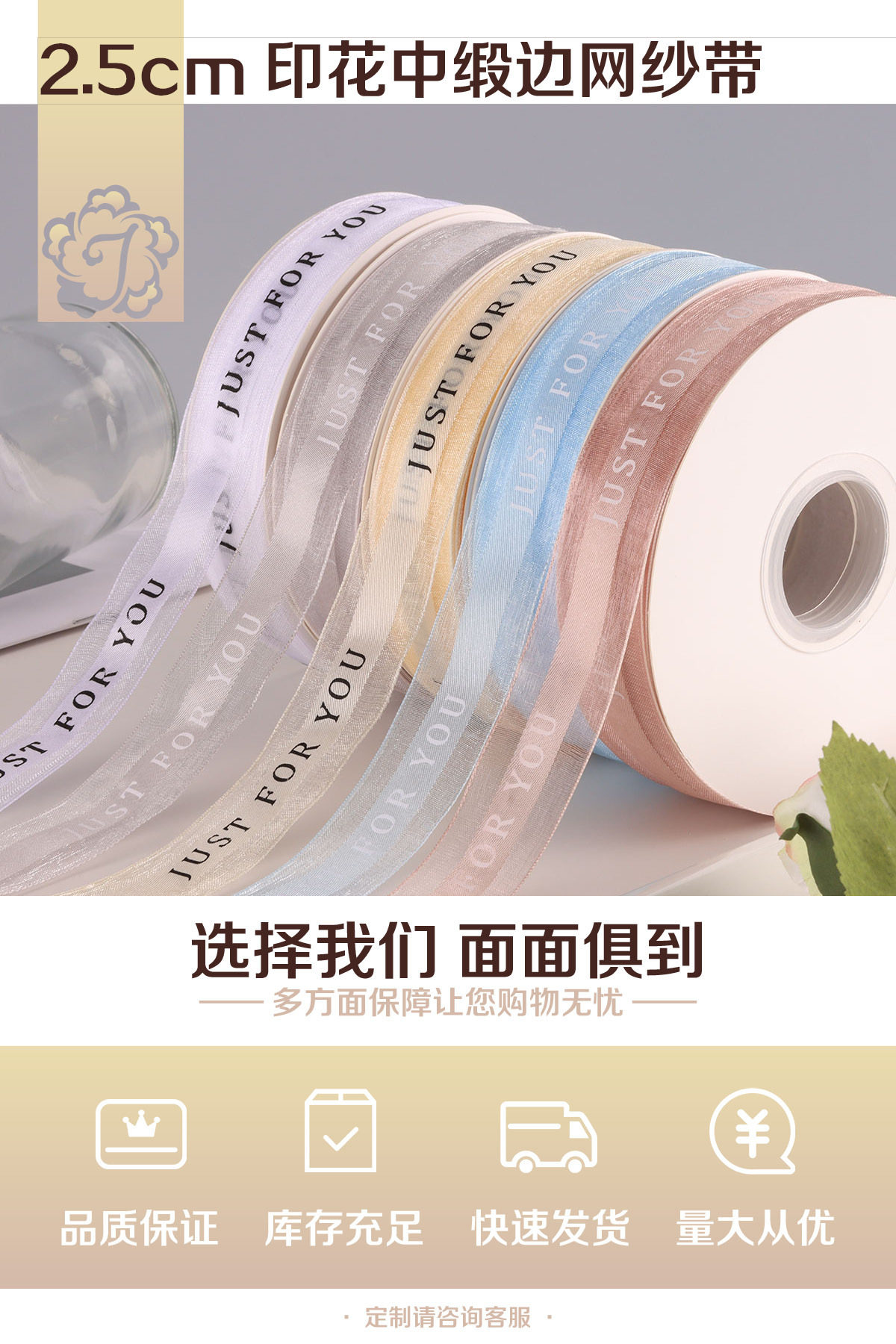 Free Shipping 2.5cm Letter Medium Satin Edge Mesh Printing Yarn Ribbon Holiday Wedding Decoration Gift Wrapping Belt Cake
