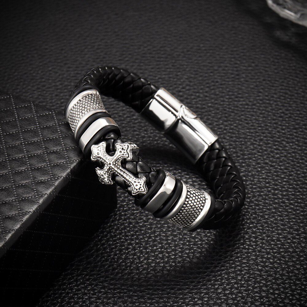 Temu hot sale cross-border leather handmade bracelet PU woven cross men's leather bracelet retro fashion