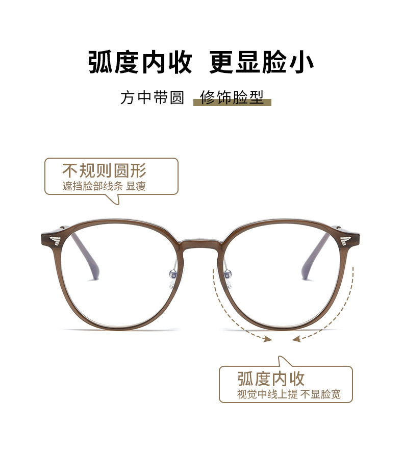 TR90 cold brown glasses women's myopia can be equipped with degrees Square round face plain beauty artifact face slimming small glasses frame