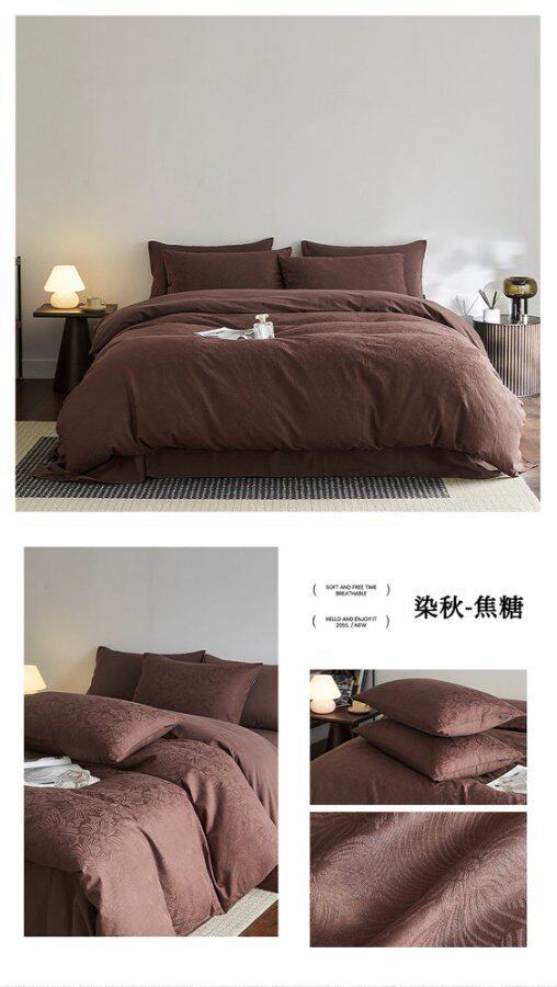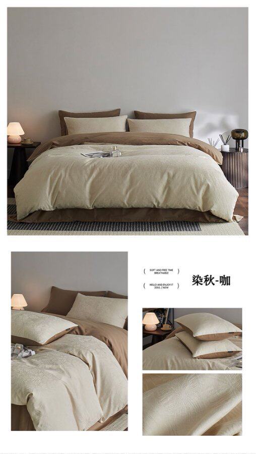 High-end 100s thick brushed cotton four-piece cotton bed sheet quilt cover fitted sheet three-piece set light luxury autumn and winter bedding