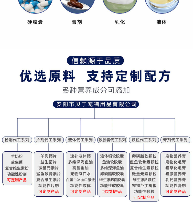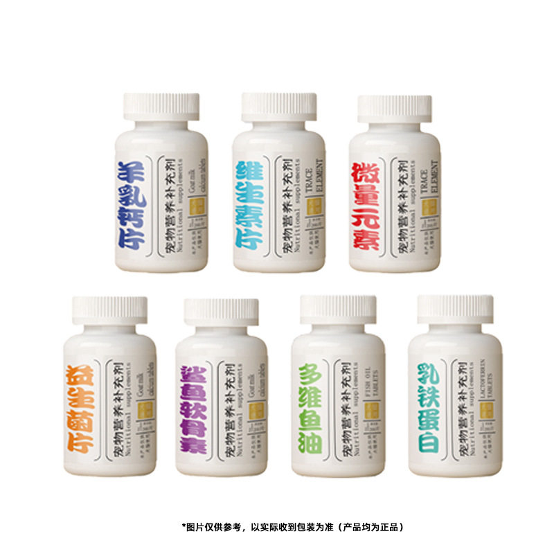 | Taste | Probiotic formula goat milk powder 300g/can,Beiyouchong multivitamin tablets 0.35g*150 tablets,Beiyouchong trace element tablets 0.35g*150 tablets,Beiyoupet probiotic tablets 0.35g*150 tablets,Beiyouchong goat milk calcium tablets 0.35g*150 tablets,Beiyouchong cat grass hair tablets 0.35g*150 tablets,Beiyouchong chondroitin tablets 0.35g*150 tablets,Beiyouchong lactoferrin tablets 0.35g*150 tablets,Orenwei goat milk calcium tablets 0.5g*200 tablets,Olenwei probiotic tablets 0.5g*200 tablets,Olvenway vitamin tablets 0.5g*200 tablets,Orenwei trace elements 0.5g*200 tablets,Olvenway shark chondroitin 0.5g*200 tablets,Olenway lactoferrin 0.5g*200 tablets,Olenweiduo fish oil tablets 0.5g*200 tablets,Olennway pet fish oil 80capsules/bottle |