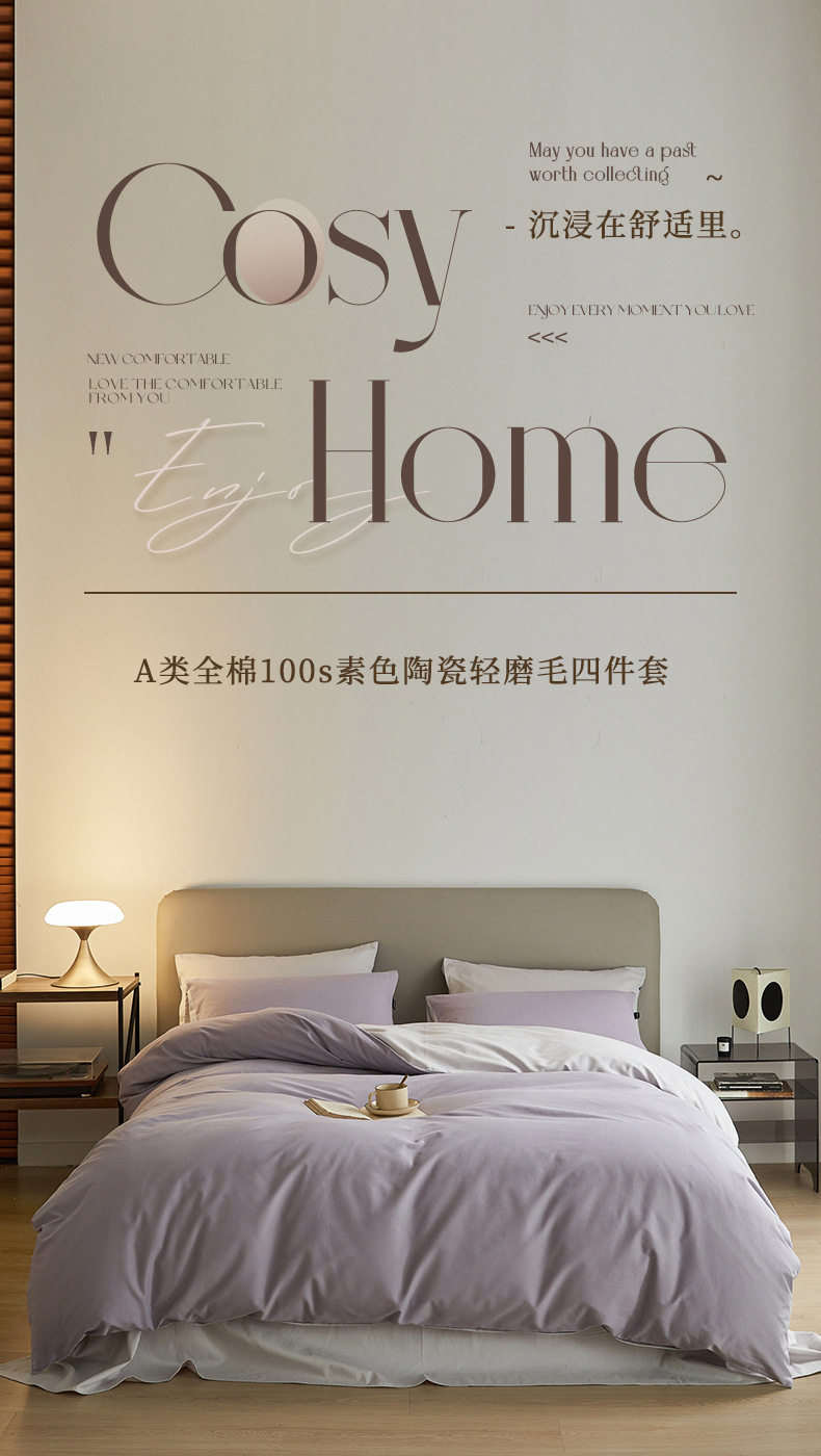 High-end 100s thick brushed cotton four-piece cotton bed sheet quilt cover fitted sheet three-piece set light luxury autumn and winter bedding