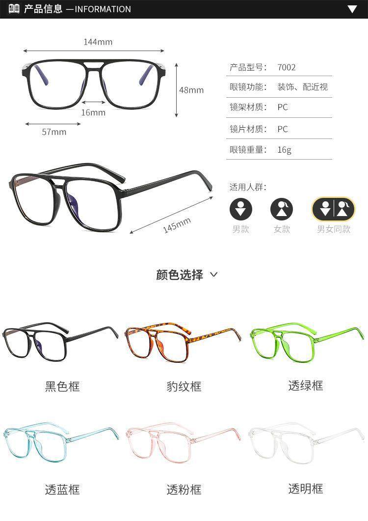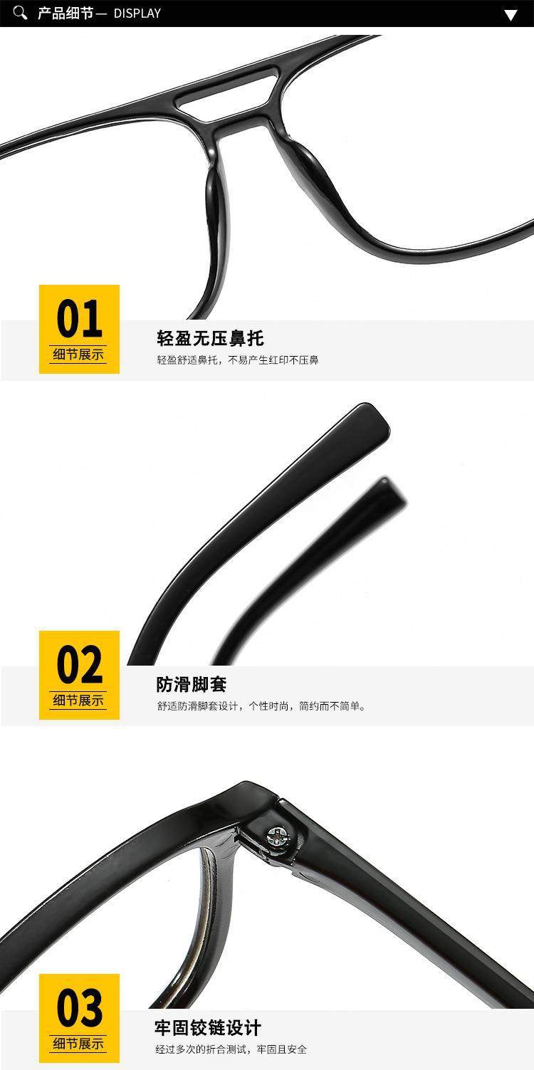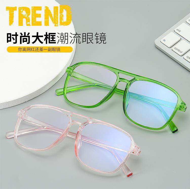 Men's and women's fashionable large frame plain glasses computer anti-blue light eye protection plastic frame plastic leg glasses women's glasses frame