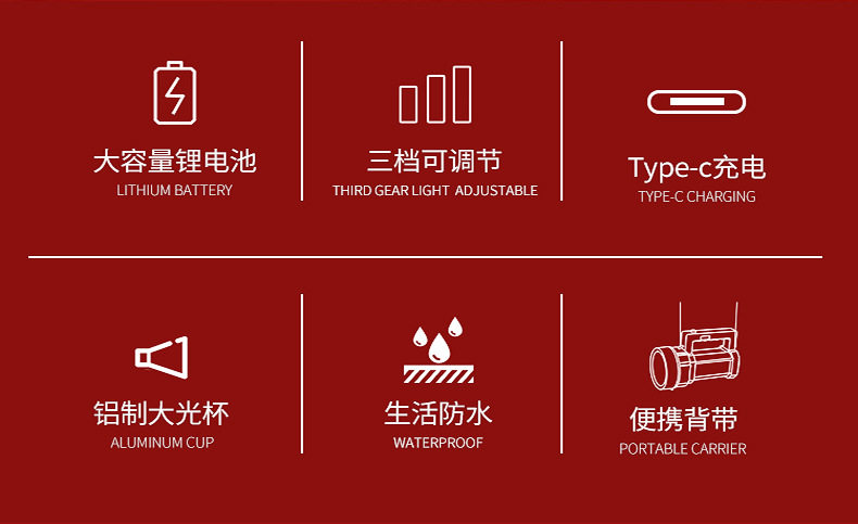 | Color | 5023GB [small size]],5020GB [medium + power display]],5022GB [large + power display + high permeability lens]],5021AGB [polymer lithium battery + side light]] |
