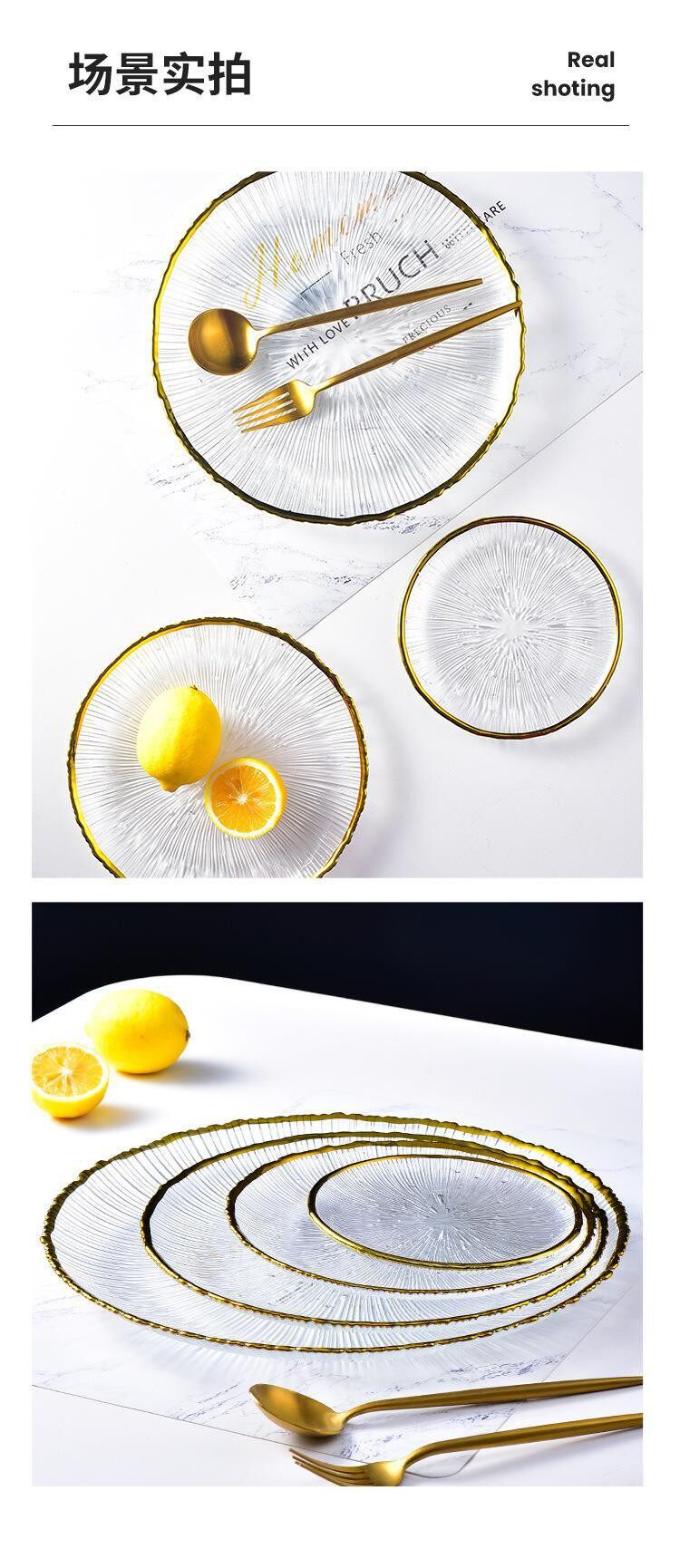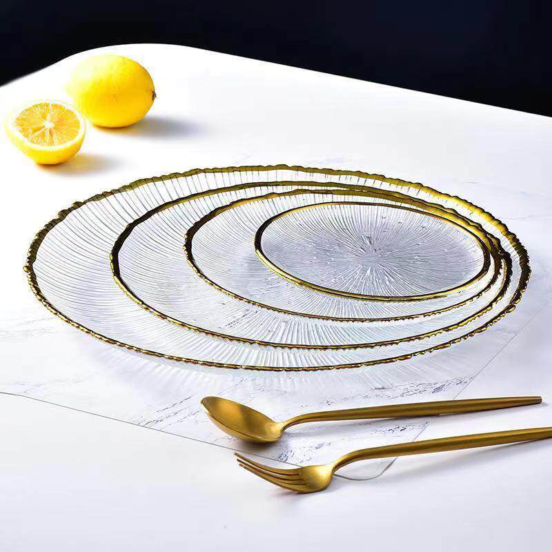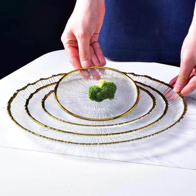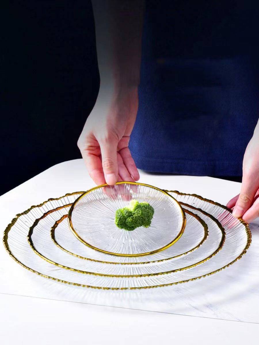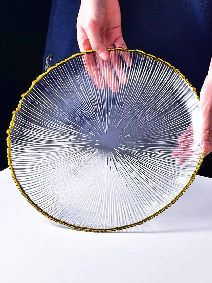 Japanese-Style Striped Glass Plate, Trendy Household Transparent Tableware, Fruit Plate, Western-Style Salad Bowl, Dinner Plate, Dish, Fireworks
