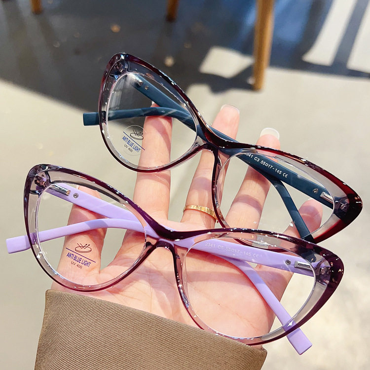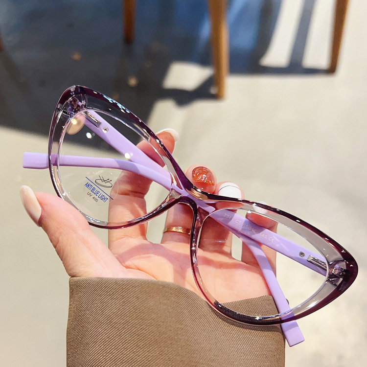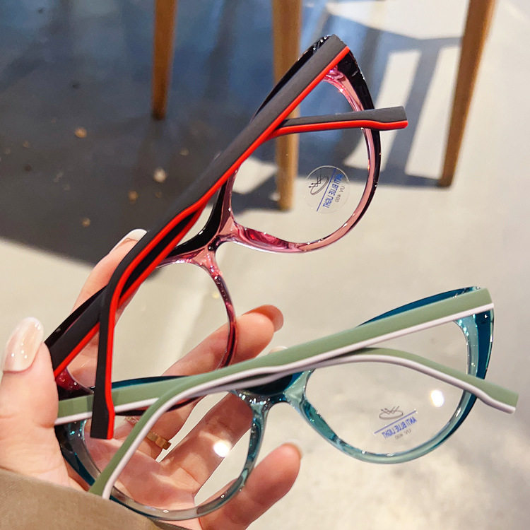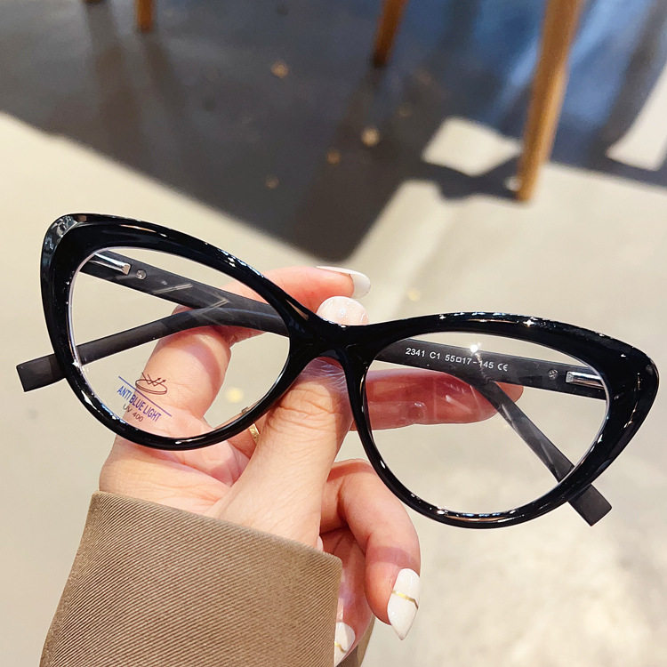 Fashion new glasses frame foreign trade hot spring TR90 plain glasses cat eye black frame anti-blue light glasses female 2023