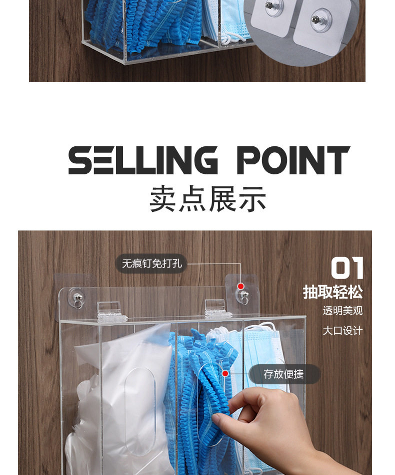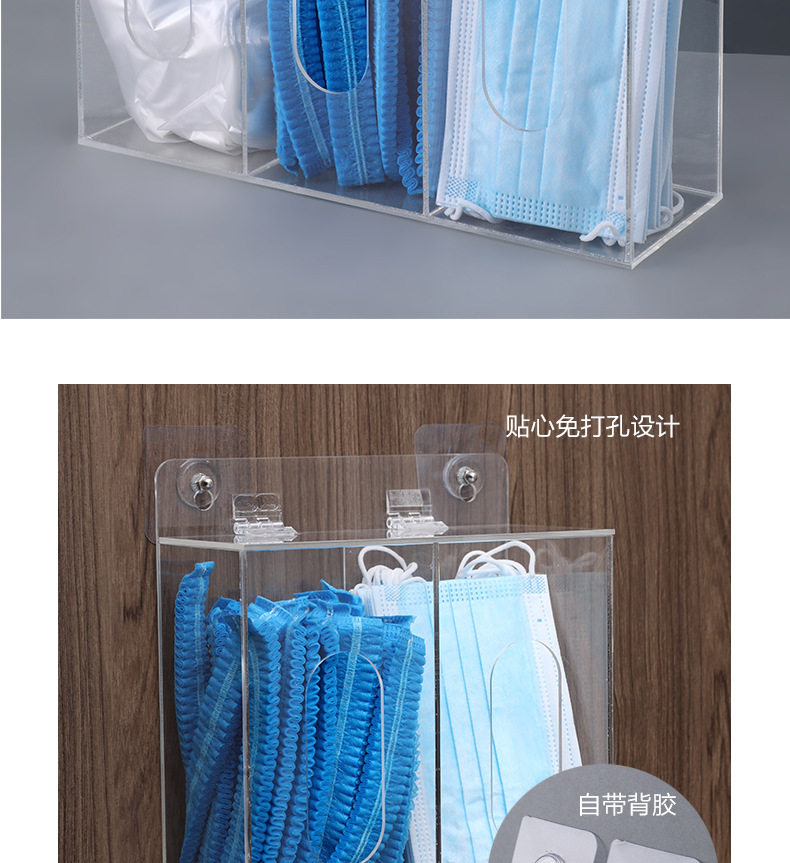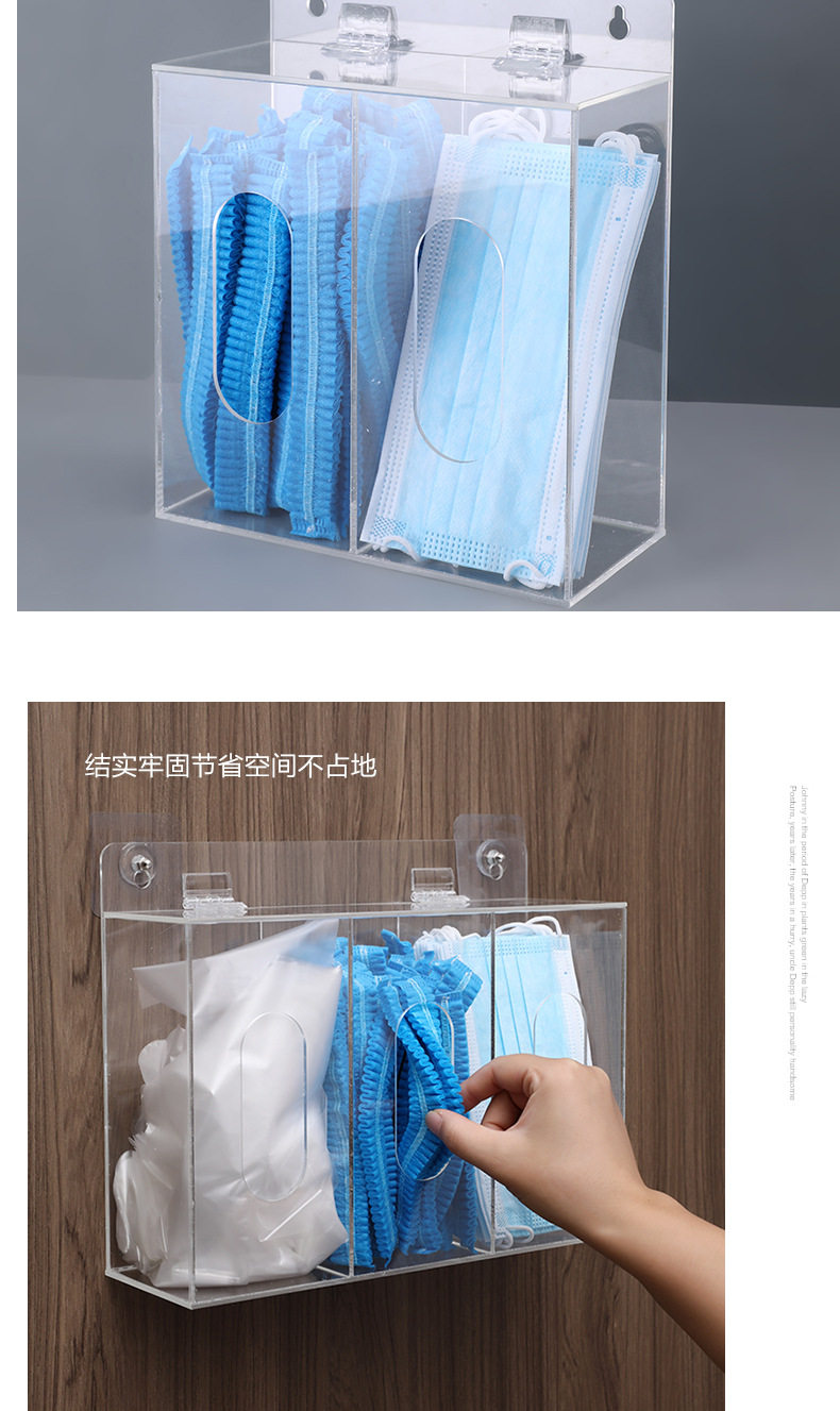 Disposable Gloves Storage Box Portable Wall Hanging Punch Free Transparent Acrylic Shoe Cover Magnetic Suction Mask Hat Finishing