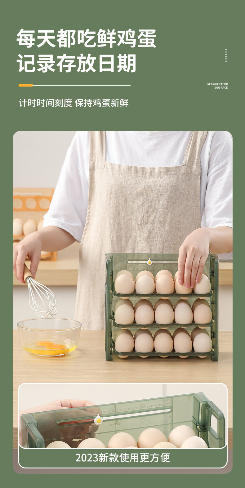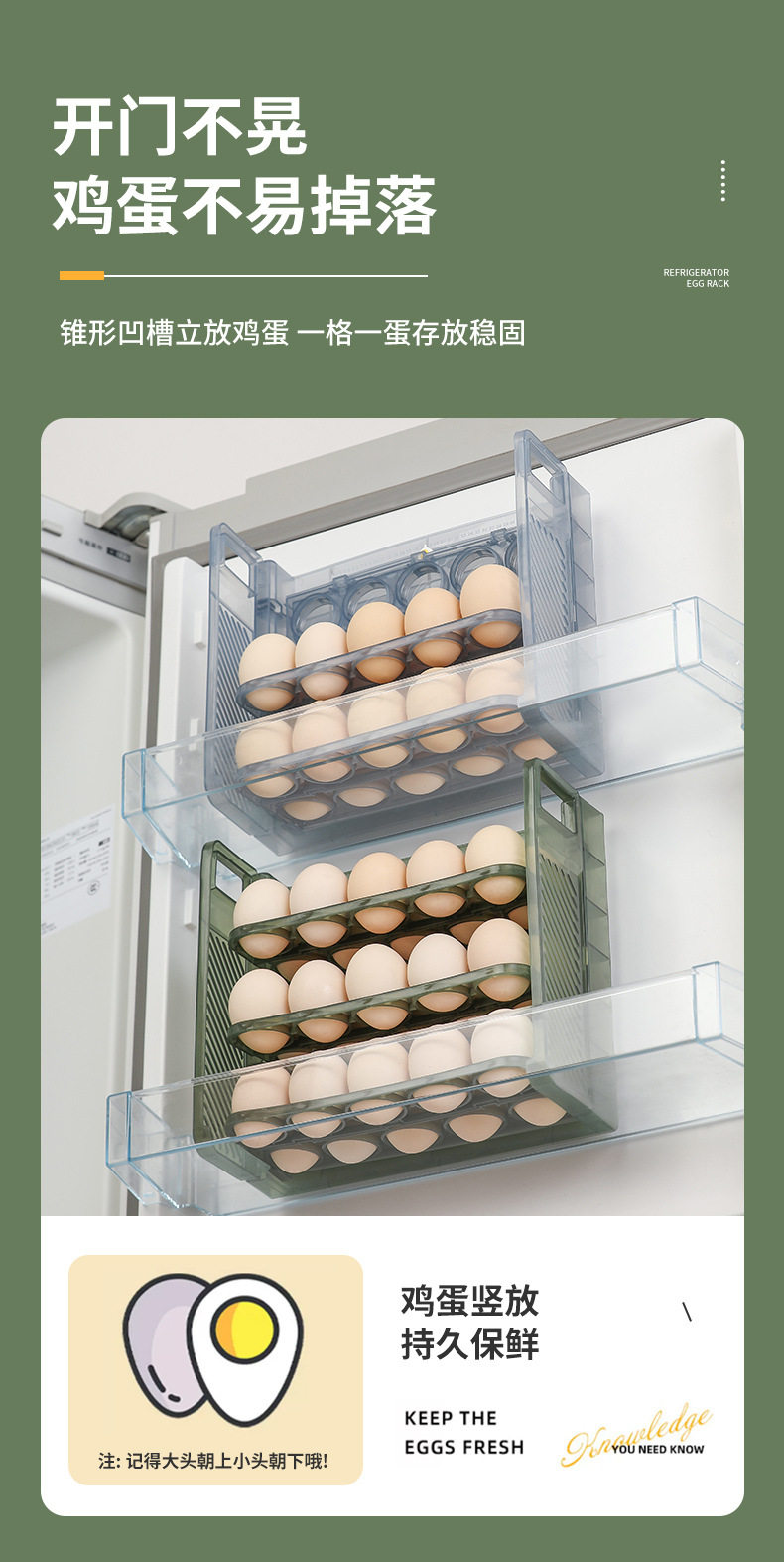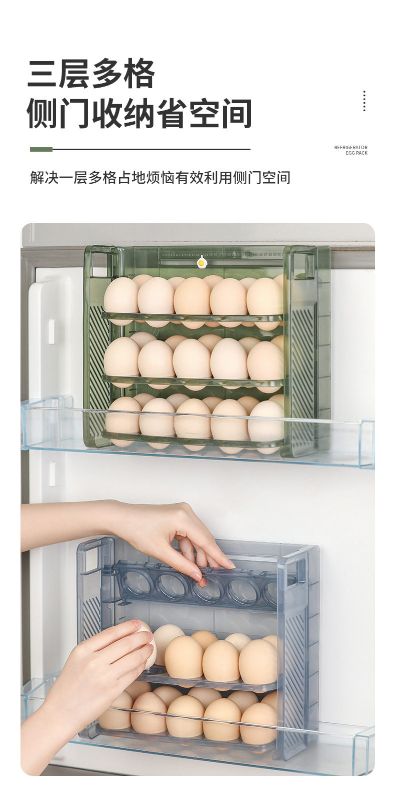 Egg storage box refrigerator preservation storage portable multi-layer egg grid drop-resistant egg tray timing egg box food grade