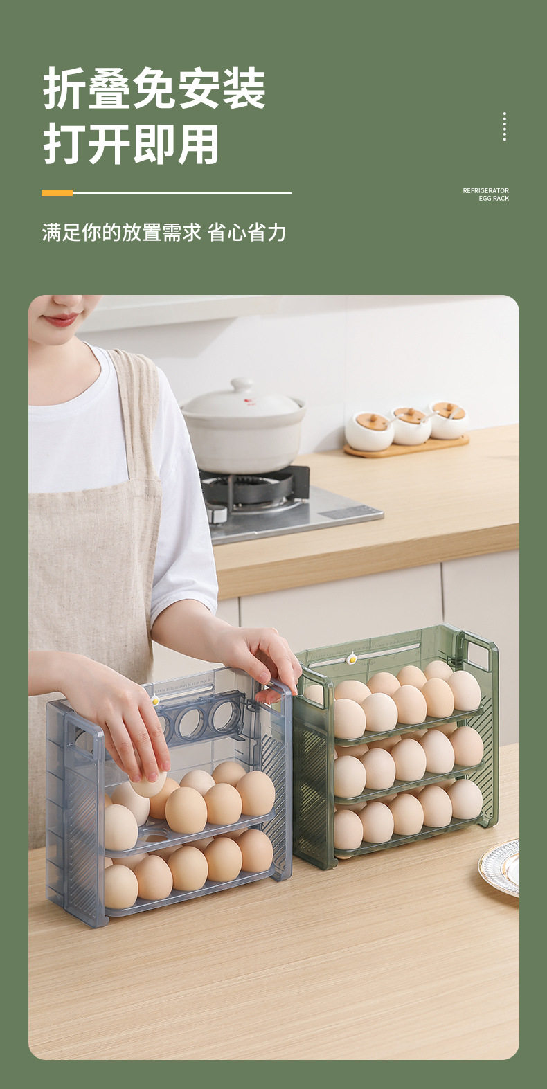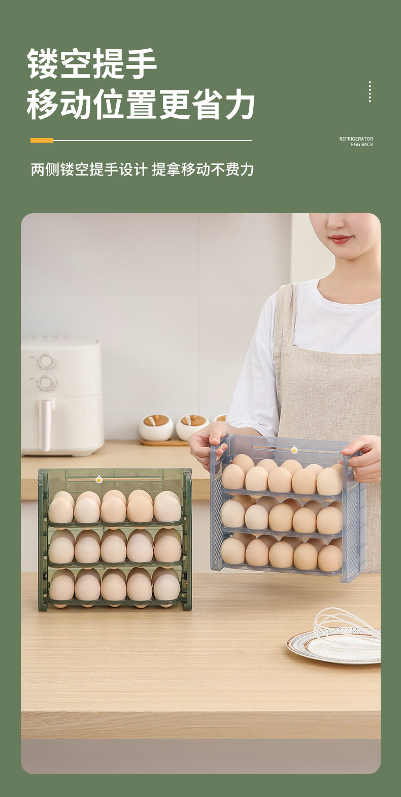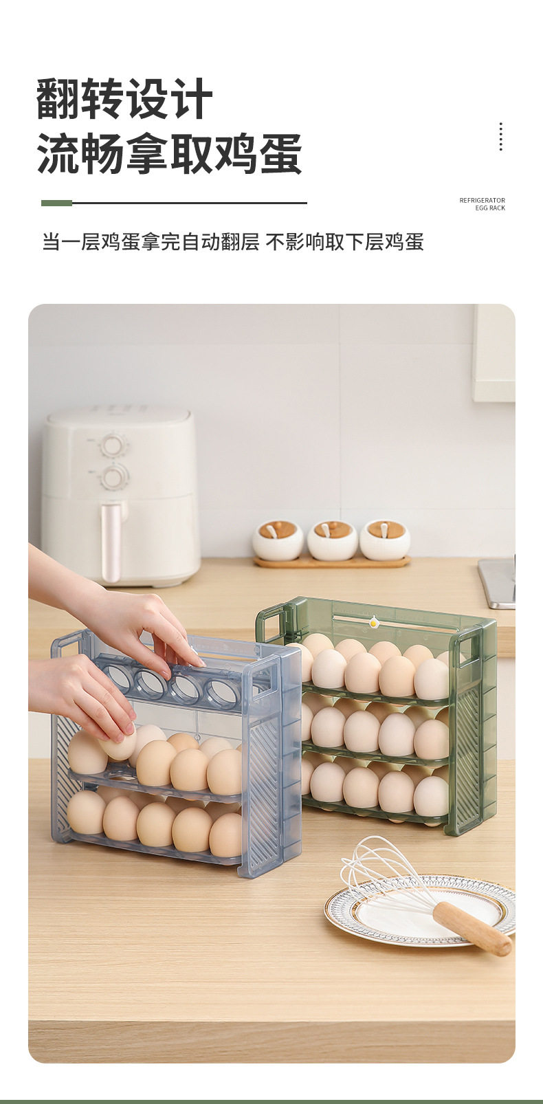 Egg storage box refrigerator preservation storage portable multi-layer egg grid drop-resistant egg tray timing egg box food grade