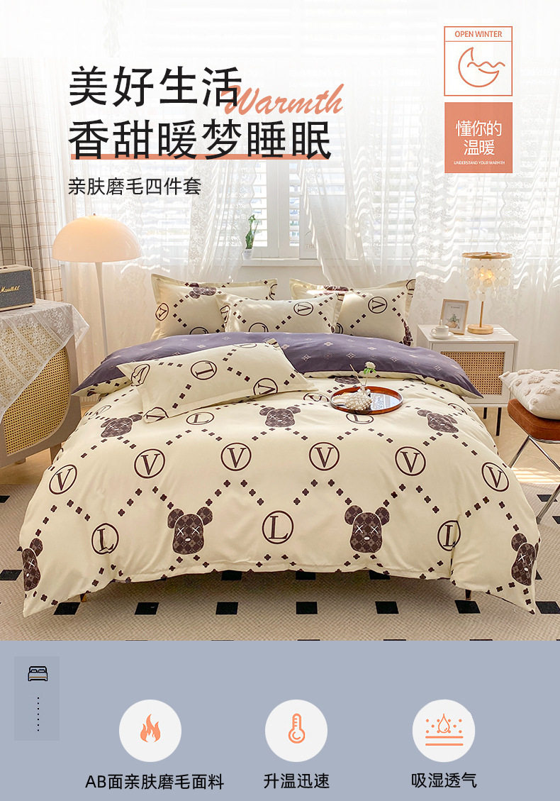 Practical Gift Thickened Brushed Four-Piece Bedding Set Winter Warm Three-Four-Piece Set Duvet Cover Bed Sheet All-Season Style