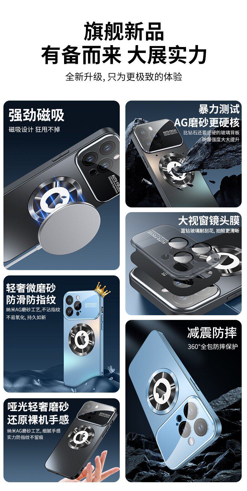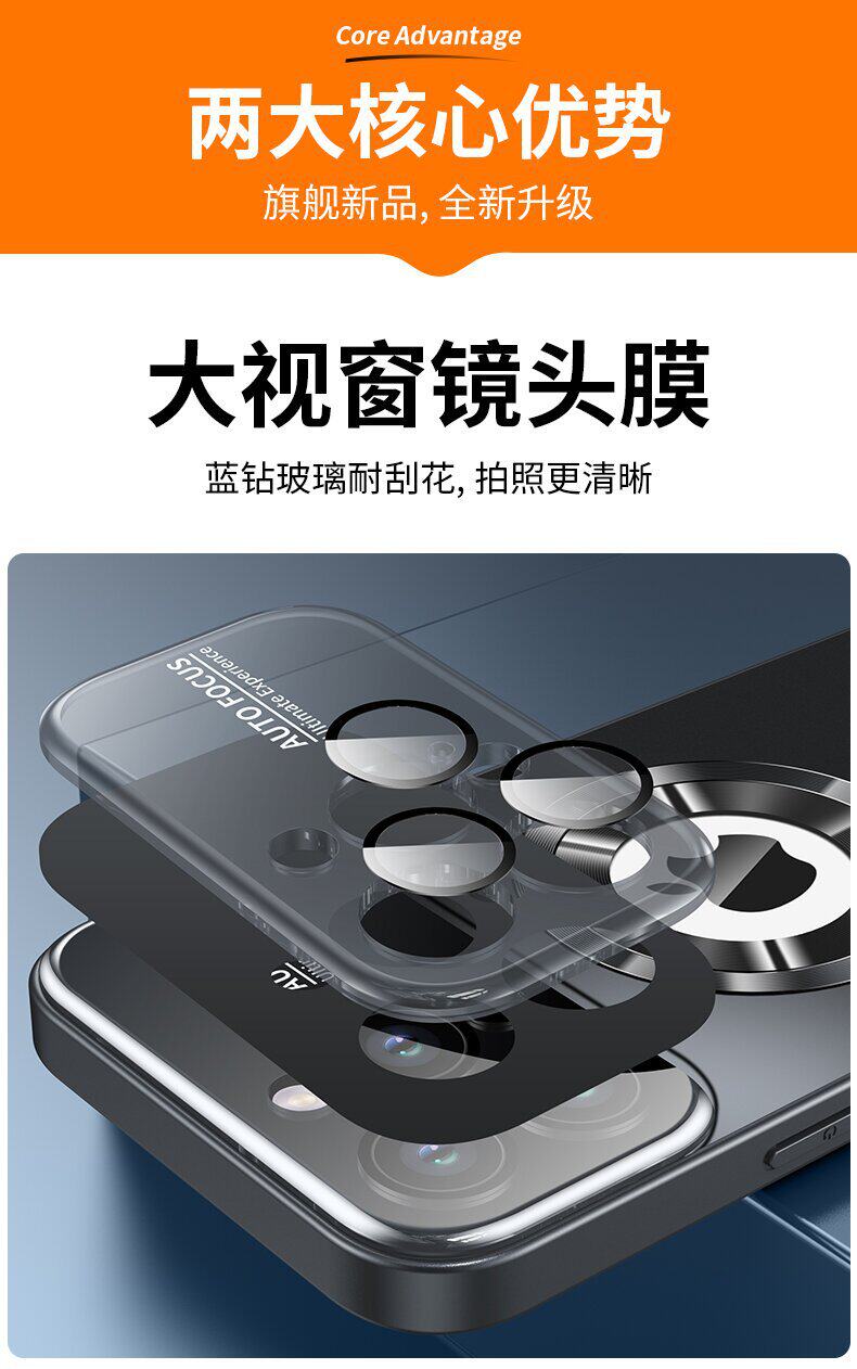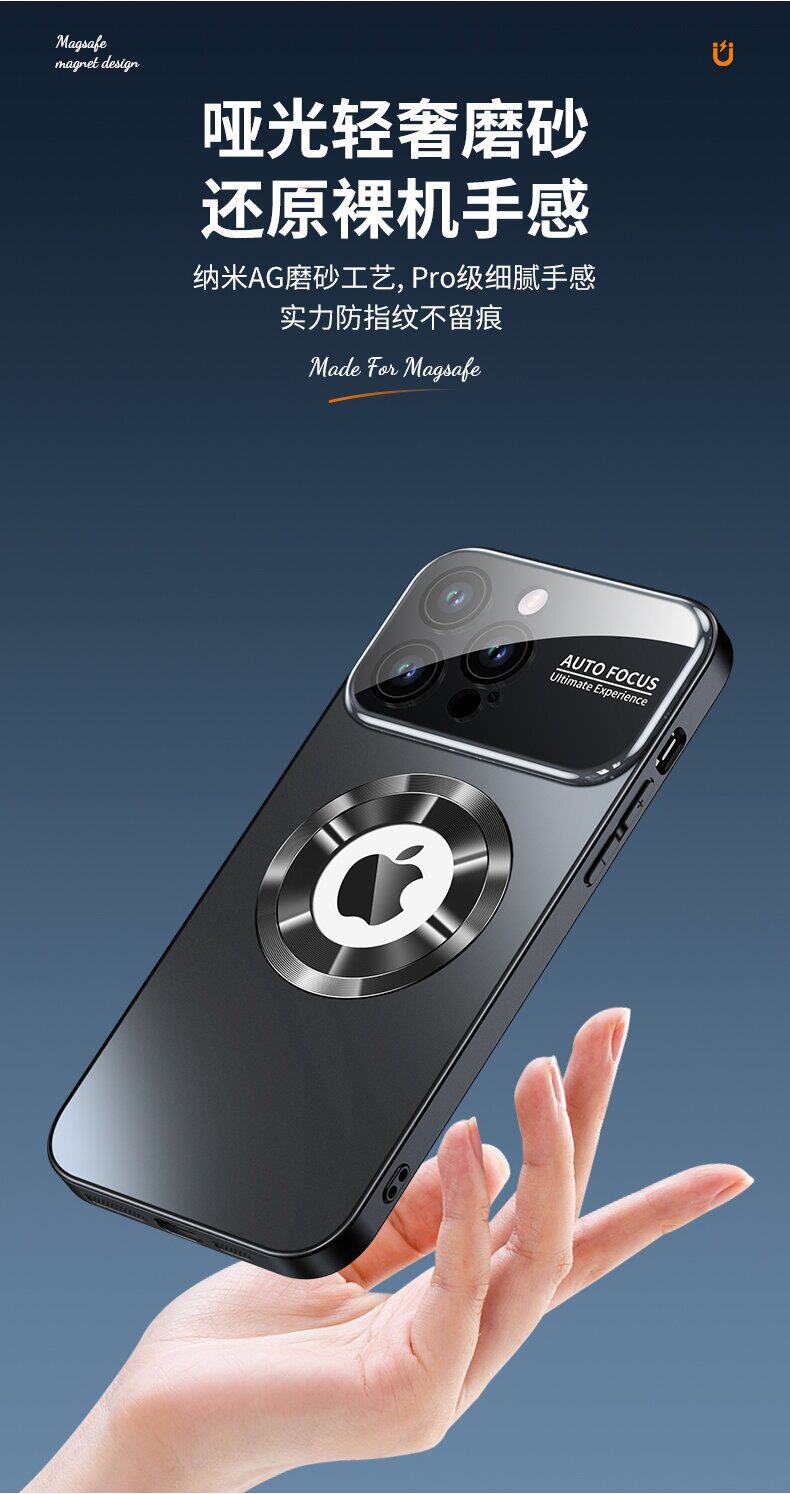 Suitable for Apple 17 Pro Max Phone Case Ag Frosted Missing Label Magnetic Large Window iPhone 16 Lens Protection Case