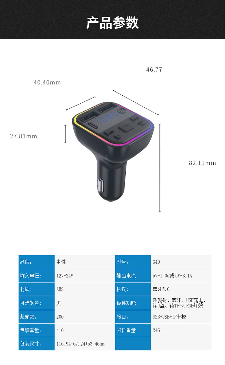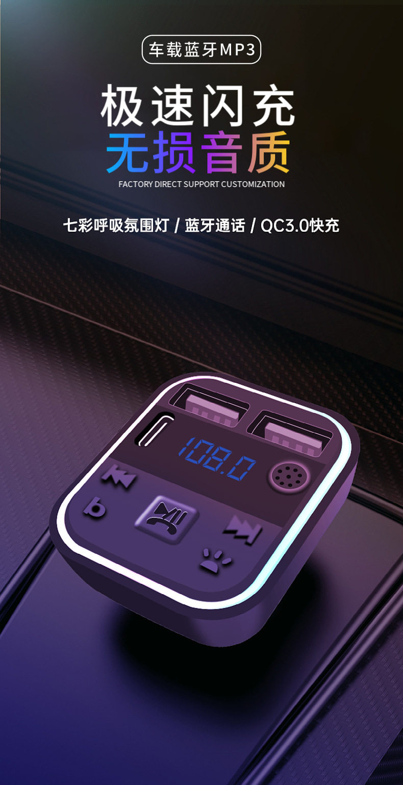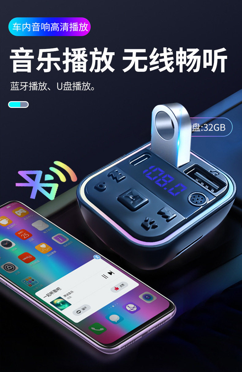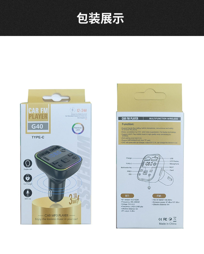 G40 Car Charger Bluetooth MP3 Play Car Cigarette Digital Display Fast Charge PD Multifunctional Car Charge Fast Charge