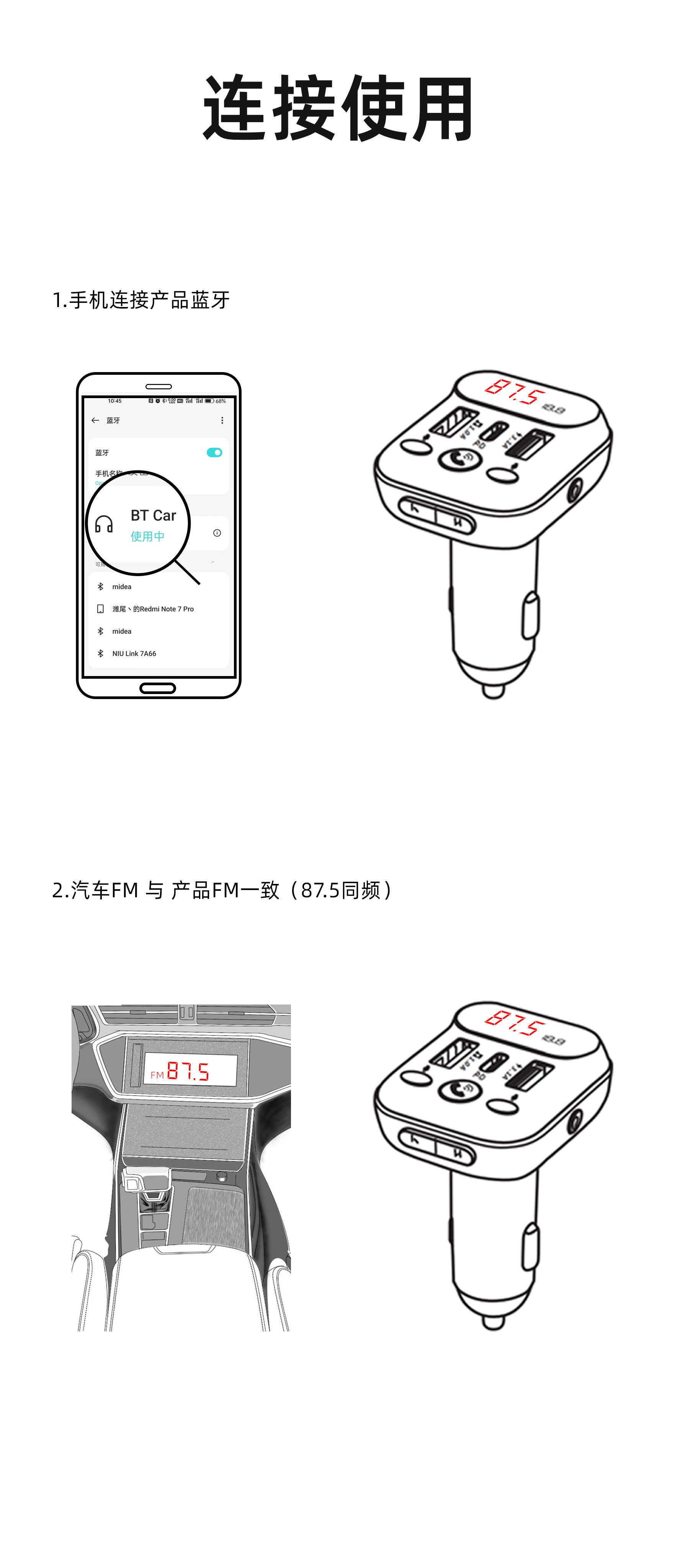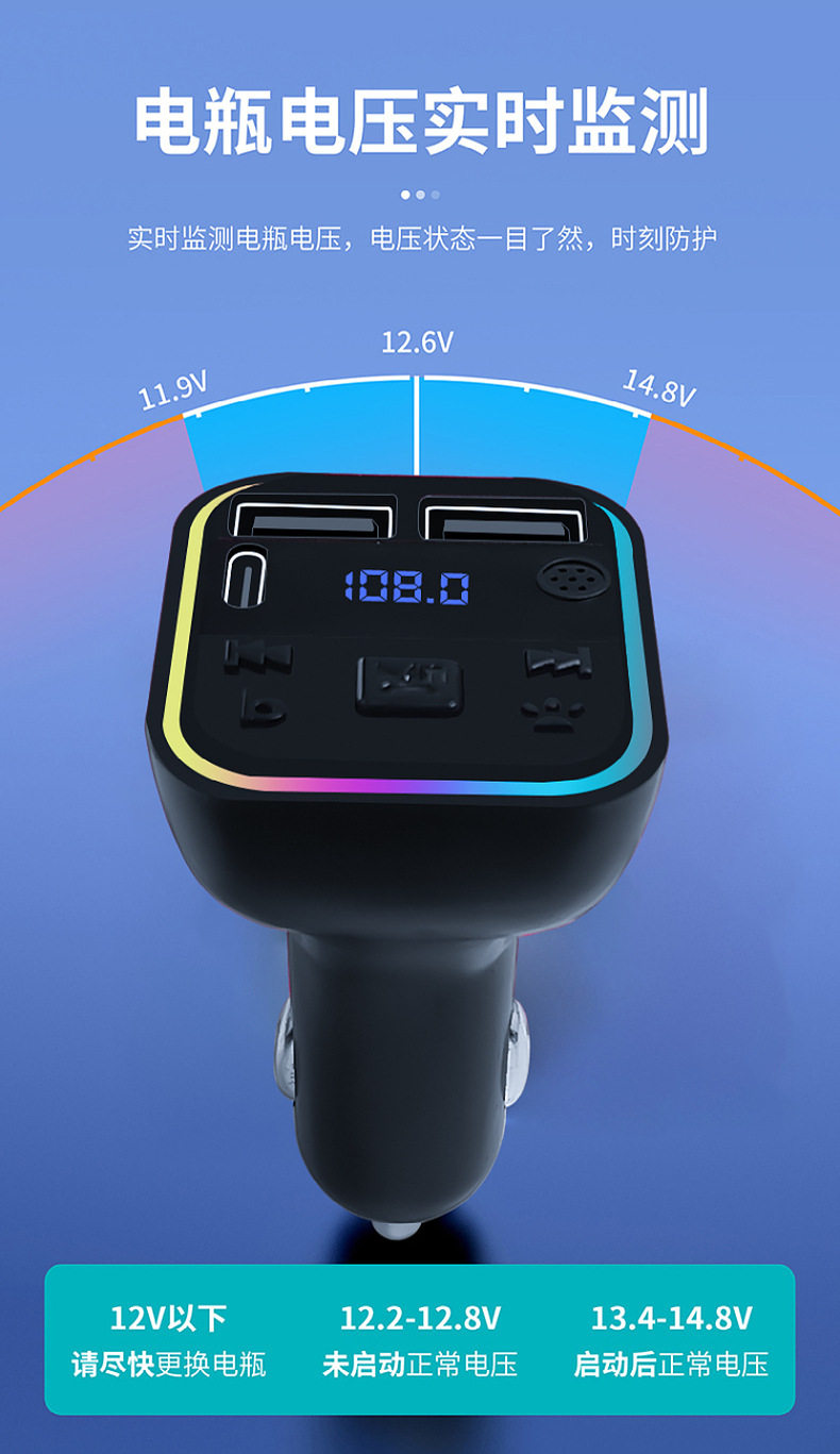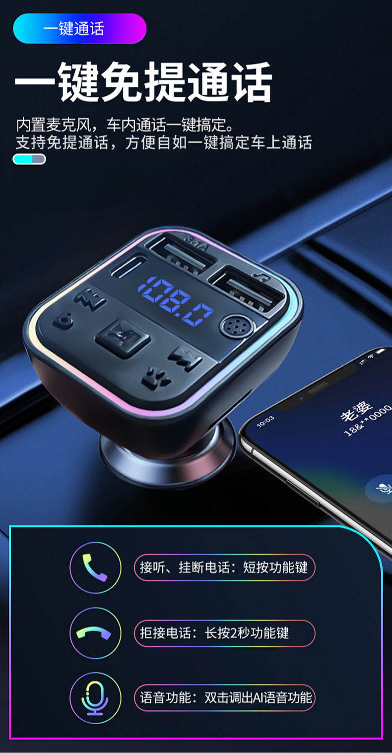 G40 Car Charger Bluetooth MP3 Play Car Cigarette Digital Display Fast Charge PD Multifunctional Car Charge Fast Charge