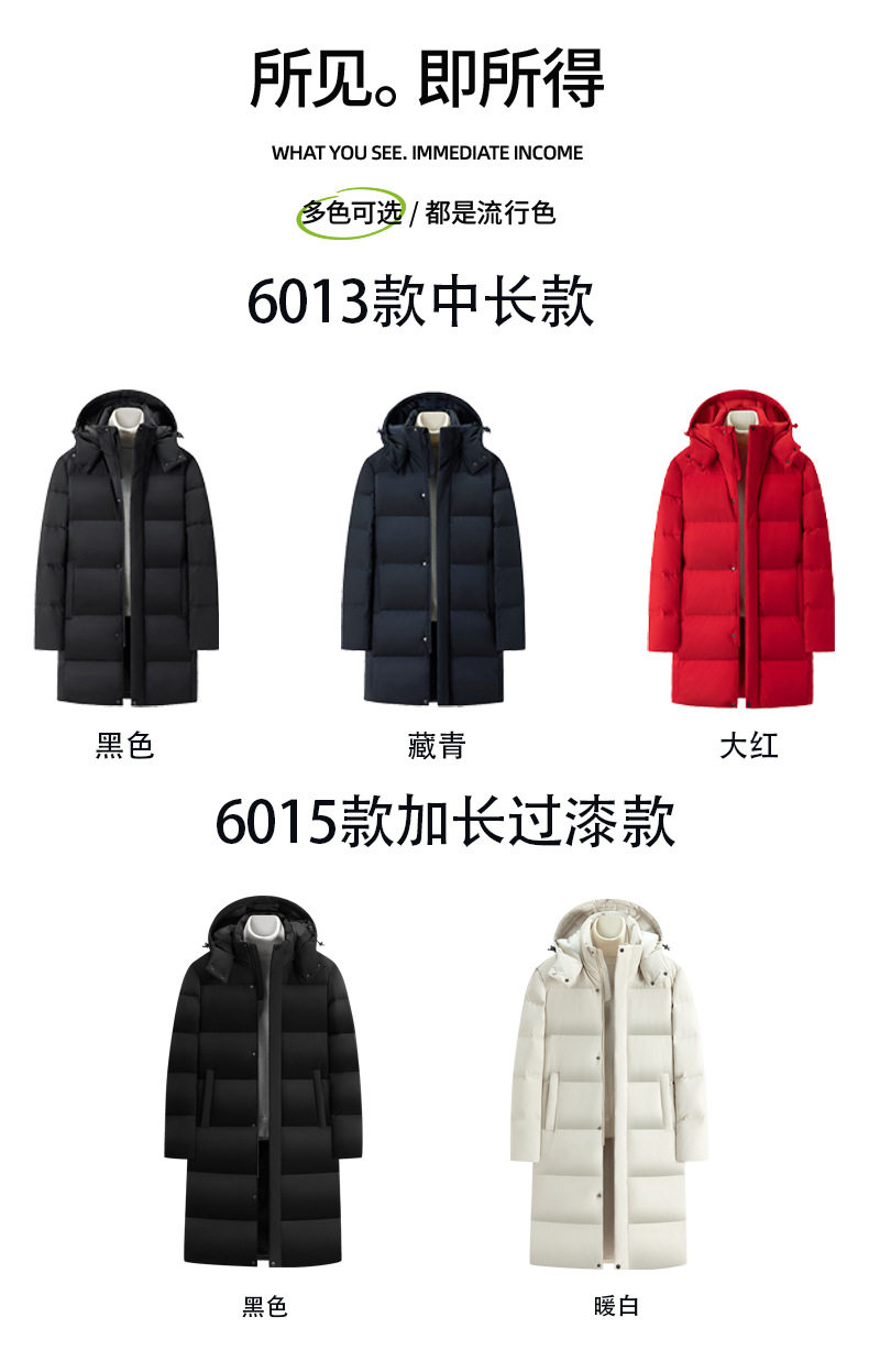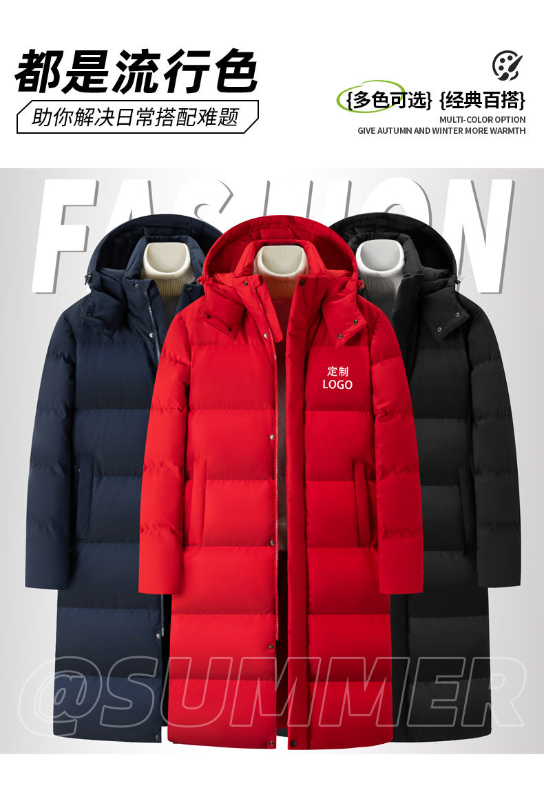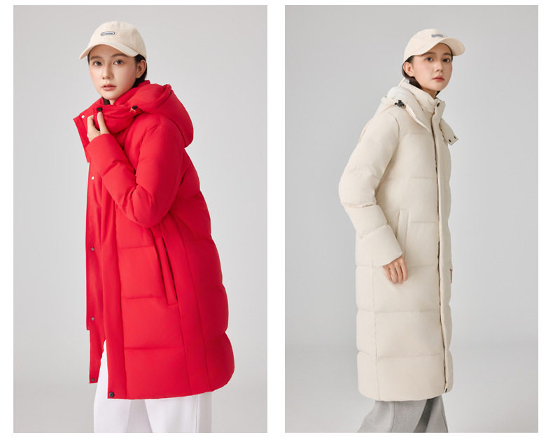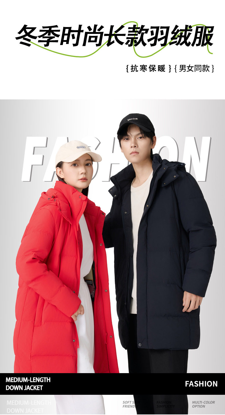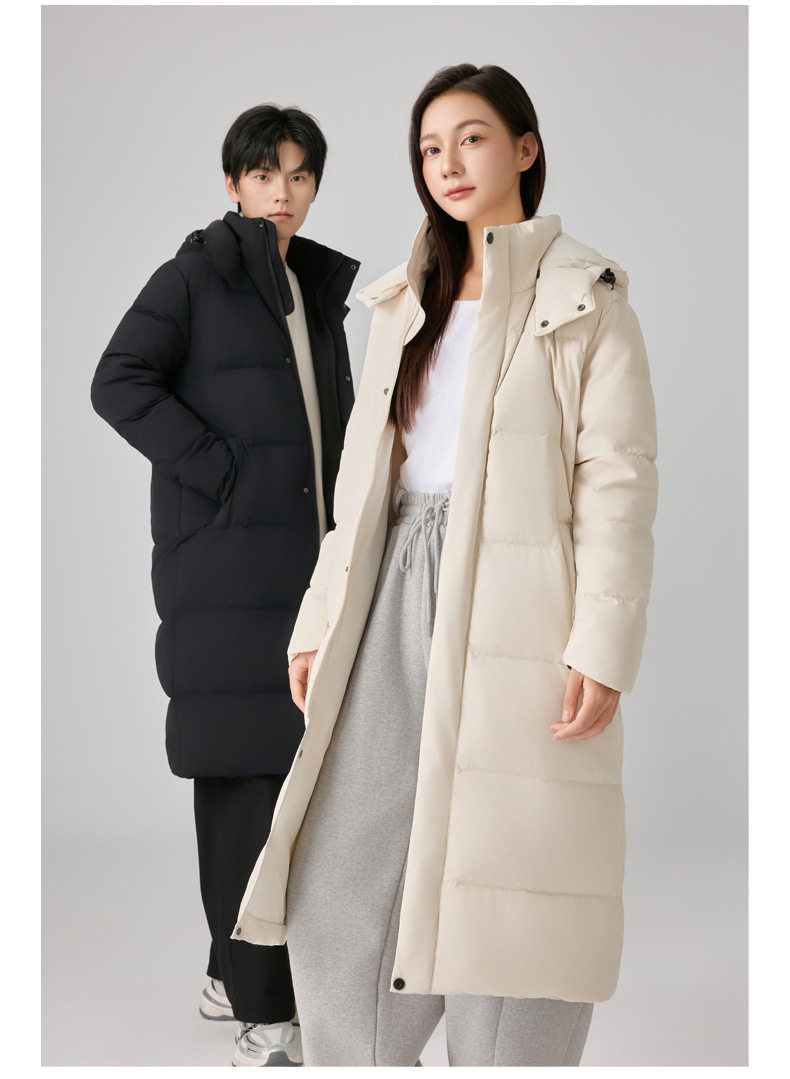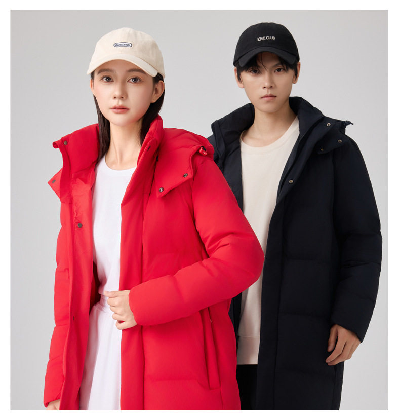 90% White Duck down Mid-Length down Jacket with Custom Logo, Thickened for Extreme Cold Weather, Suitable for College Training, Over-The-Knee Long down Jacket