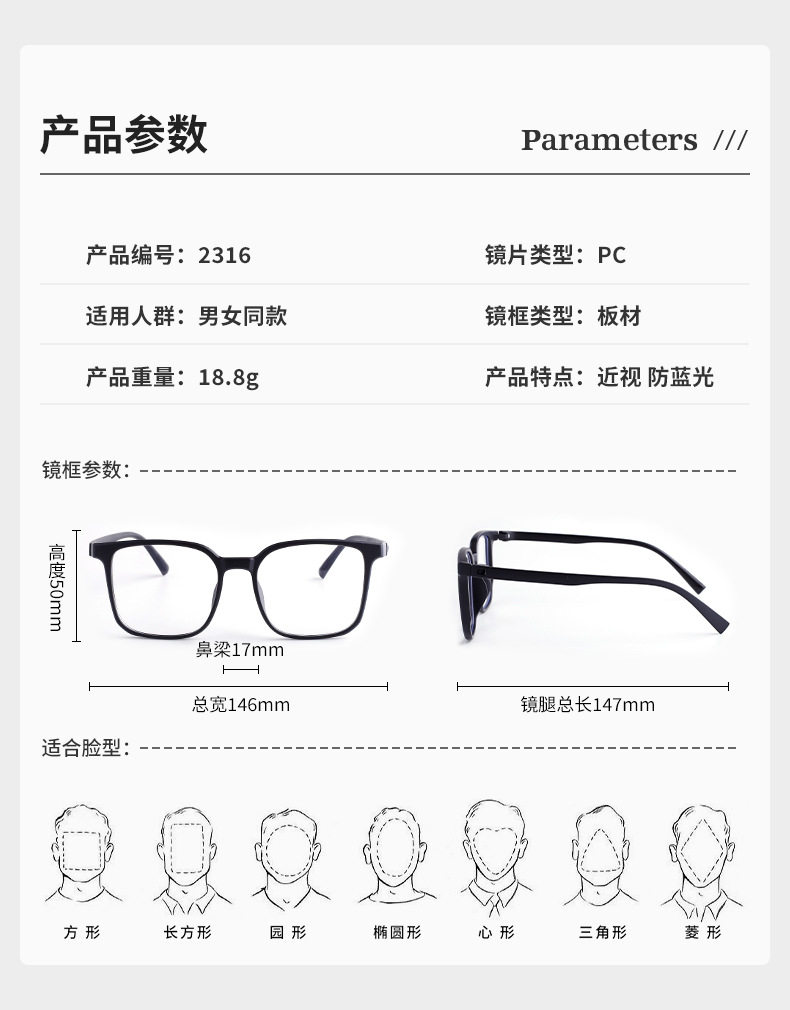 | Frame color | Matte Black,Bright Black,Frosted powder,Frosted Gray,Frosted tea,Frosted White |