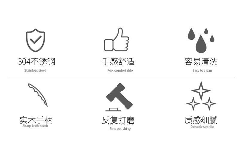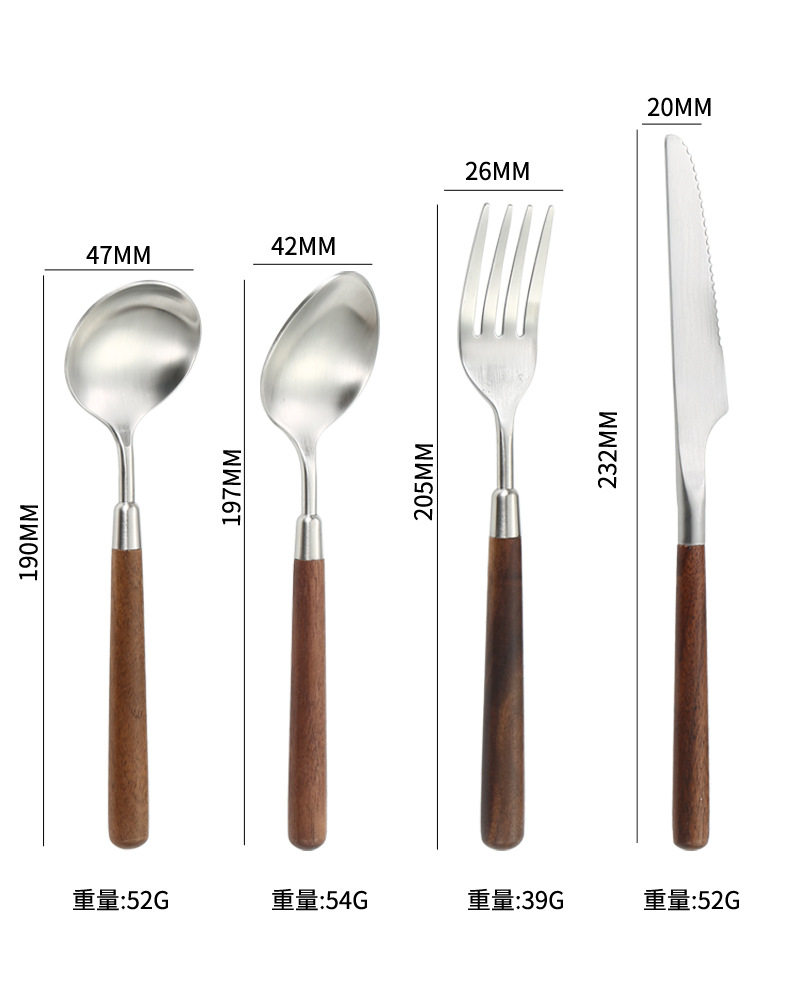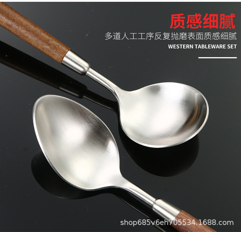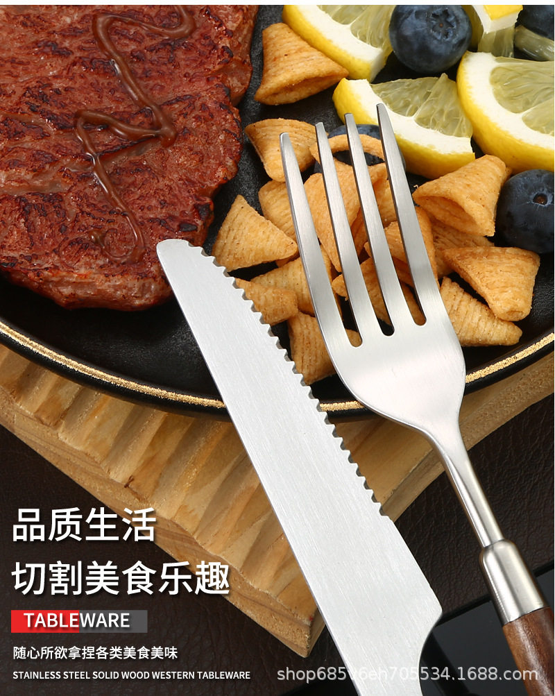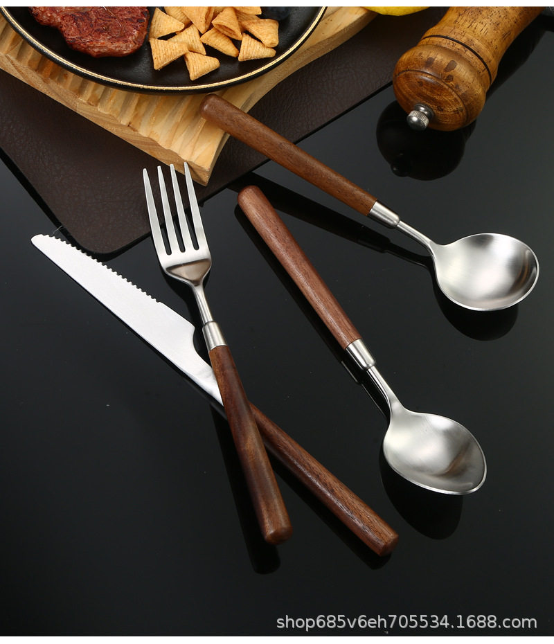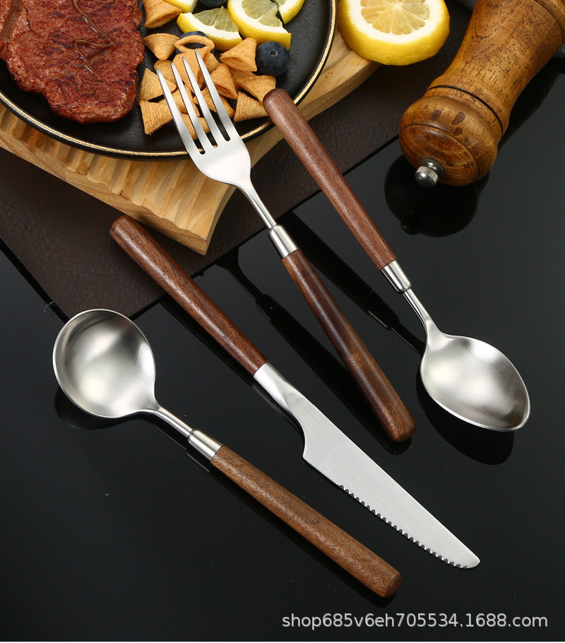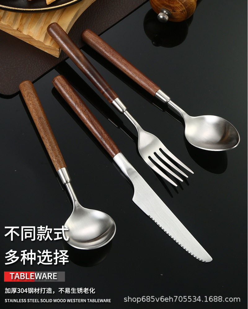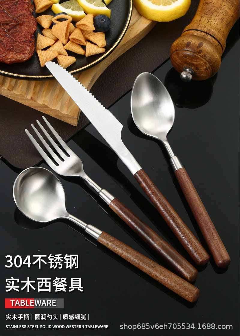 Walnut knife, fork and spoon four-piece set household 304 stainless steel hotel restaurant Western tableware wooden handle fork steak knife