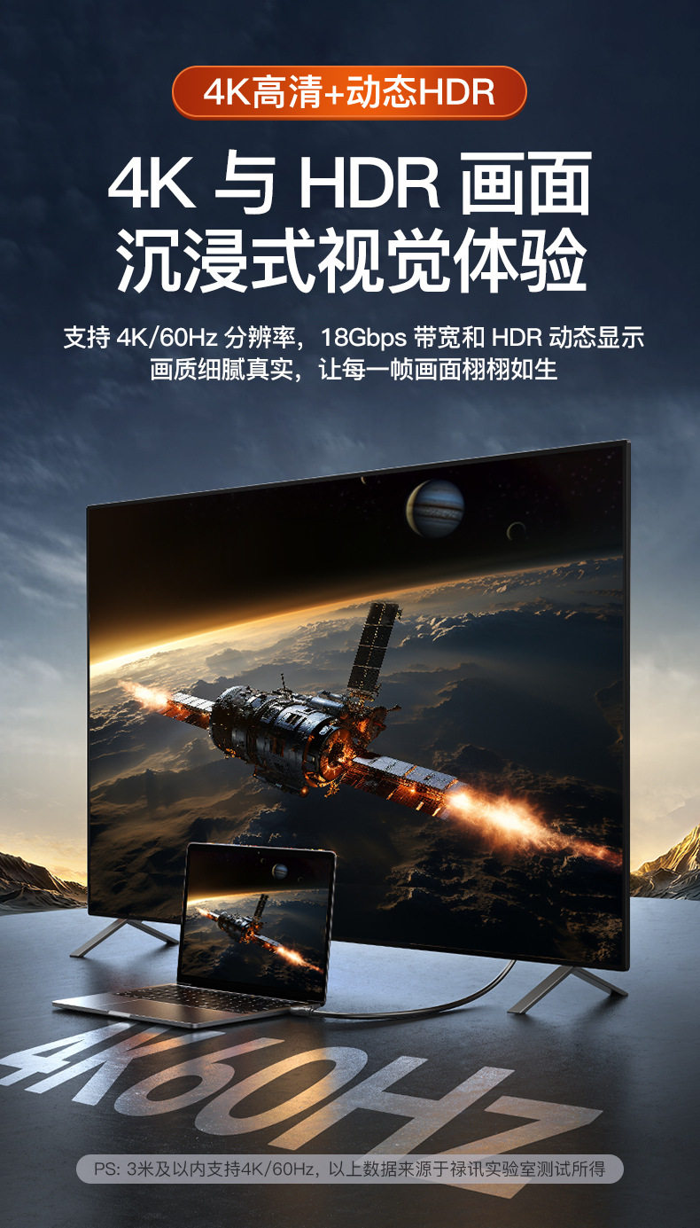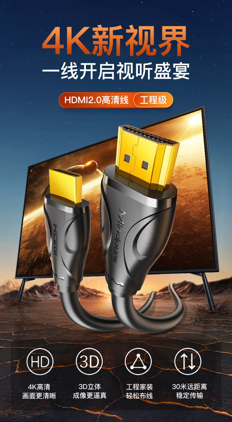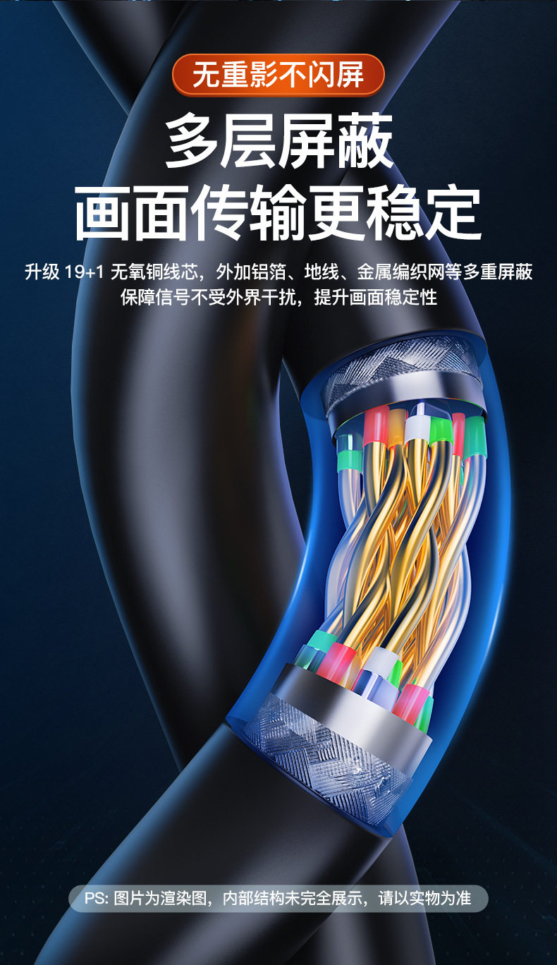 HDMI High-Definition Cable 4K60Hz Oxygen-Free Copper 19+1 Laptop Connection Cable Monitor Projector Wall-Mounted