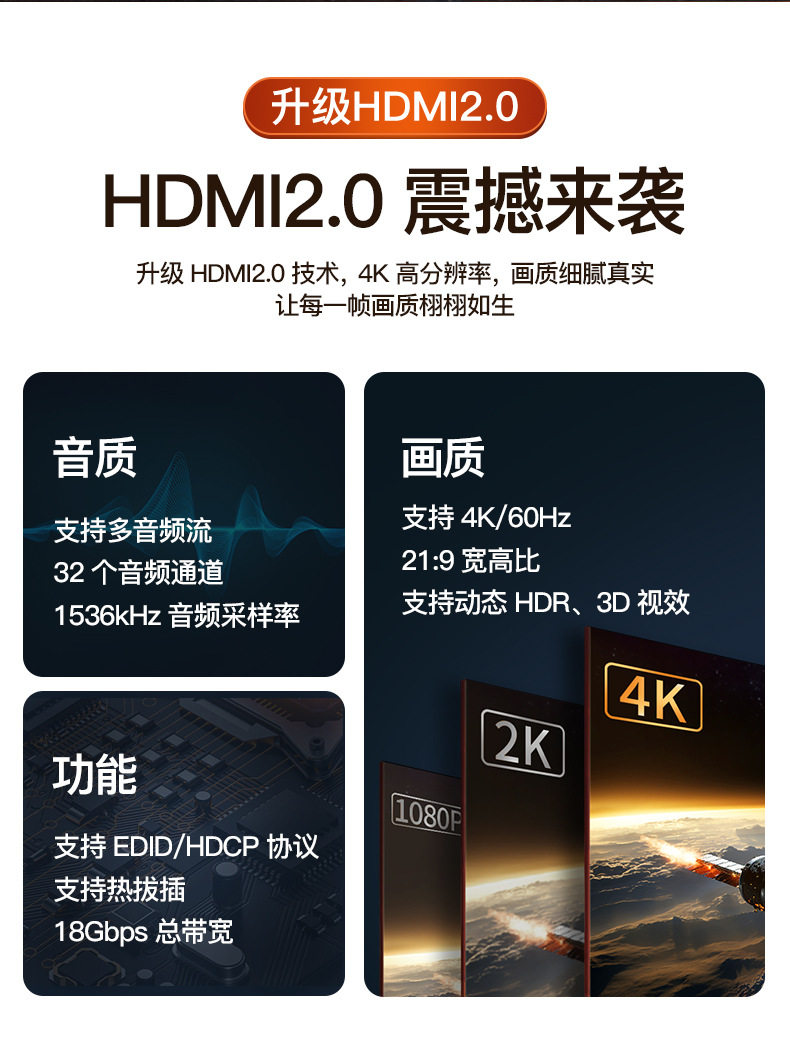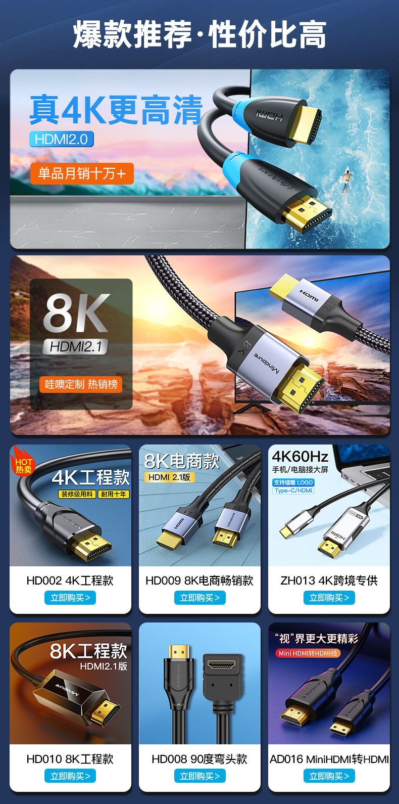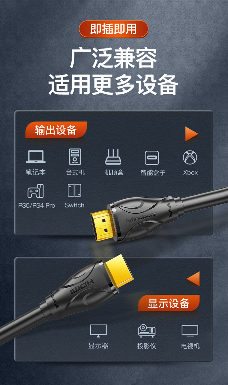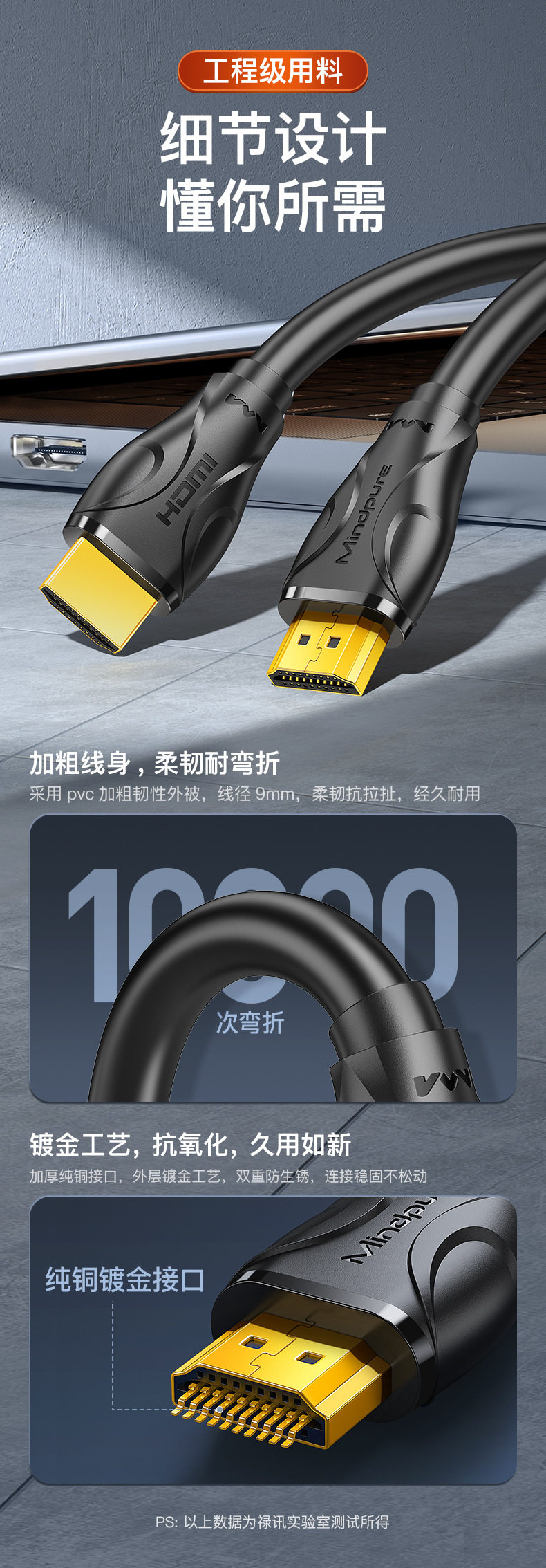 HDMI High-Definition Cable 4K60Hz Oxygen-Free Copper 19+1 Laptop Connection Cable Monitor Projector Wall-Mounted
