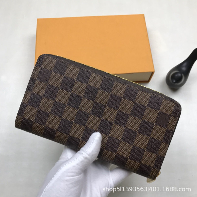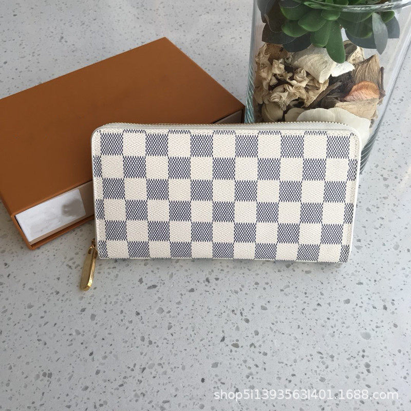 2023 new foreign trade unisex long wallet wallet single zipper printed plaid long wallet 60017