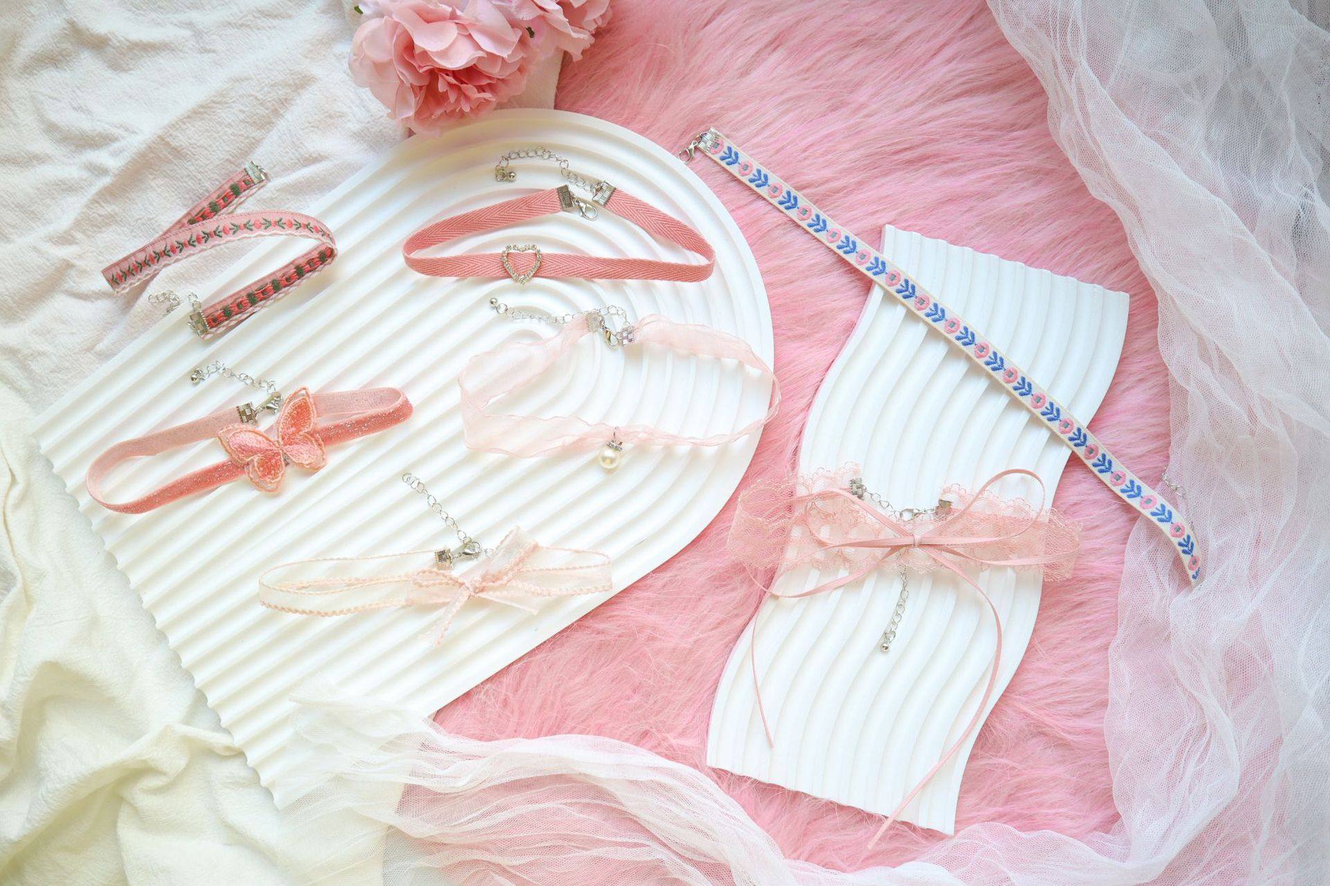 Cross-Border New Jewelry Girl Neckband Pink Heart Pendant Necklace Choker Collar Clavicle Chain Butterfly Necklace
