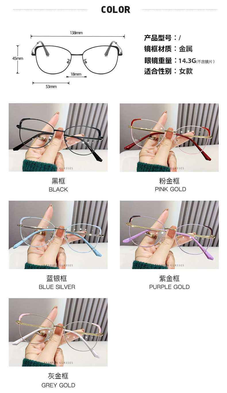 | Frame color | Black Frame,Pink gold frame,Blue silver frame,Purple gold frame,Gray gold frame |