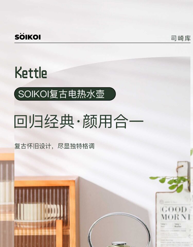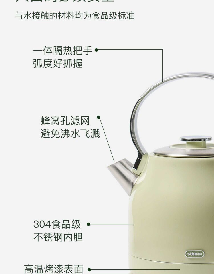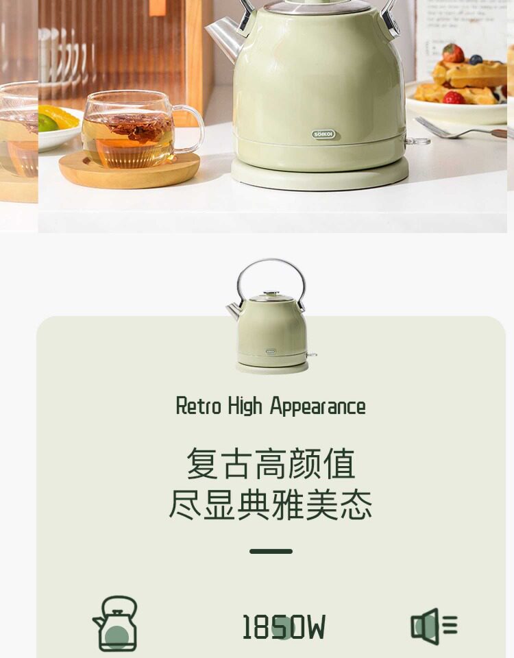 SOIKOI Shizaki Ku Vintage Kettle Household Electric Kettle Large Capacity Automatic Power Off Stainless Steel
