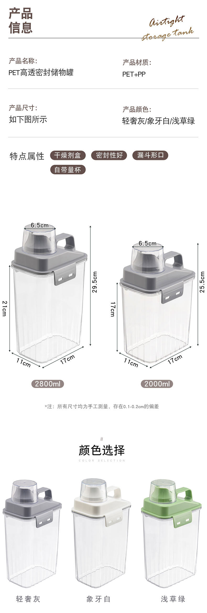 Sealed Can Grain Storage Box Bucket 2800 ml Grain Coffee Bean Measuring Cup Storage Artifact Cat Food Can
