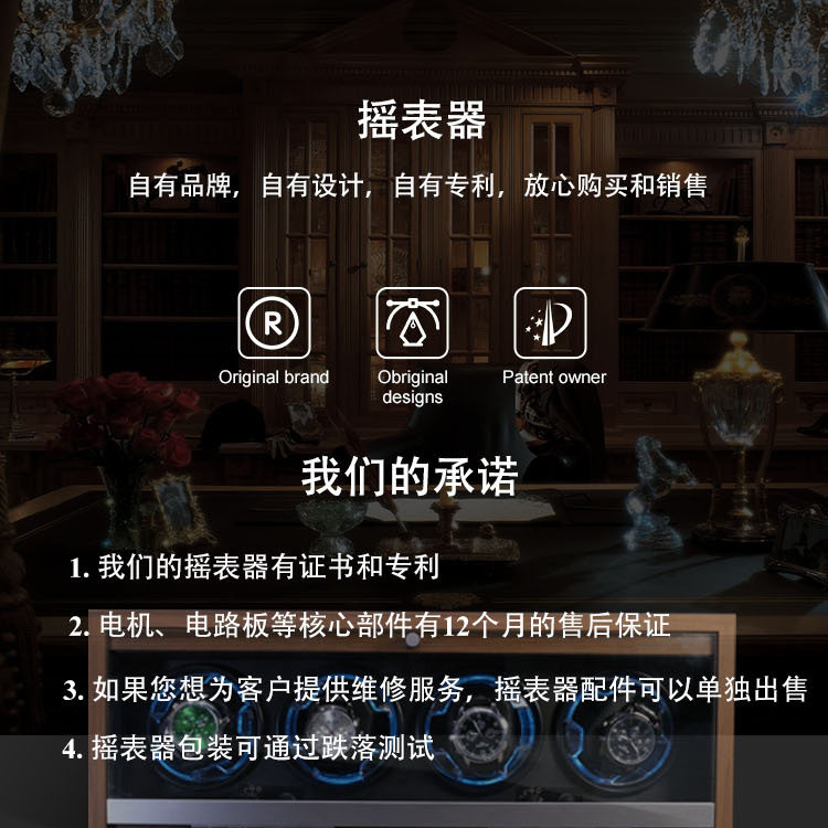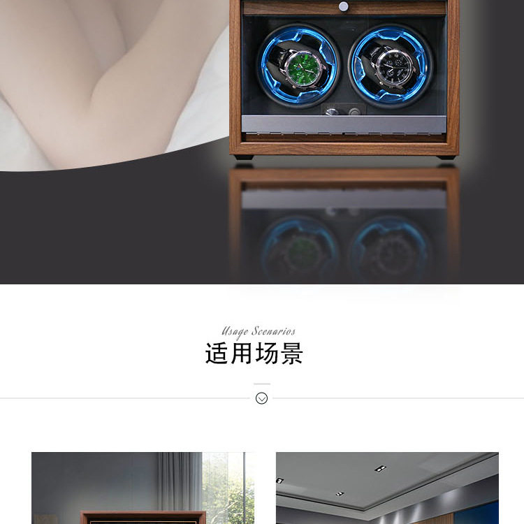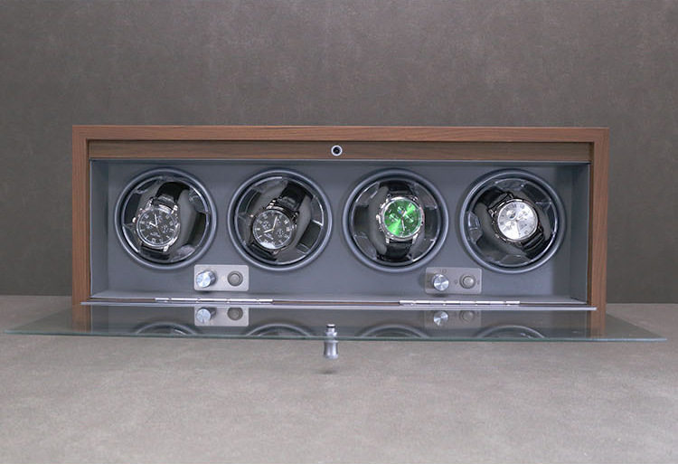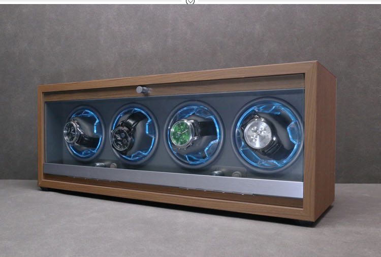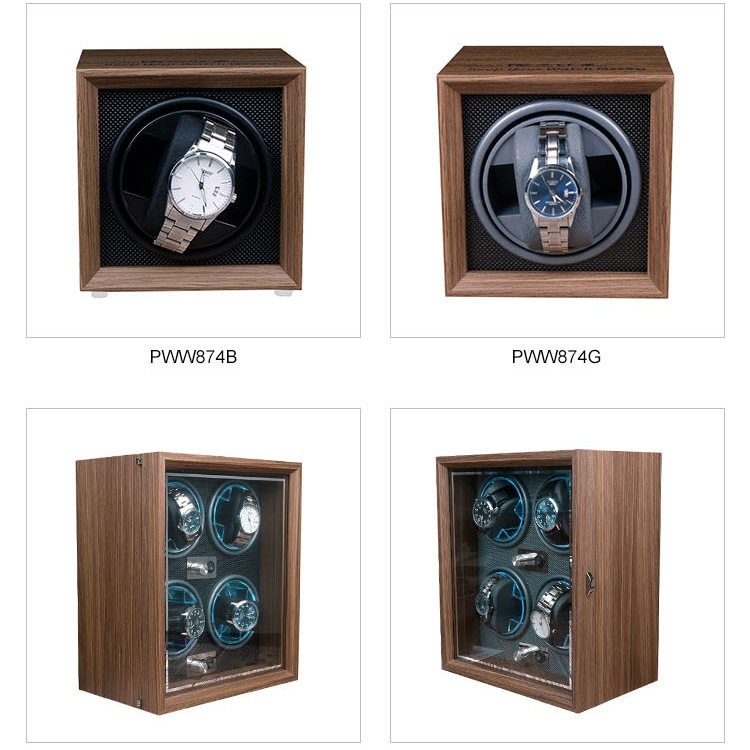 Black Walnut Grain Wooden Glass Door 4-Slot Watch Winder Mechanical Watch Winding Motor Box Watch Case with Dustproof Design