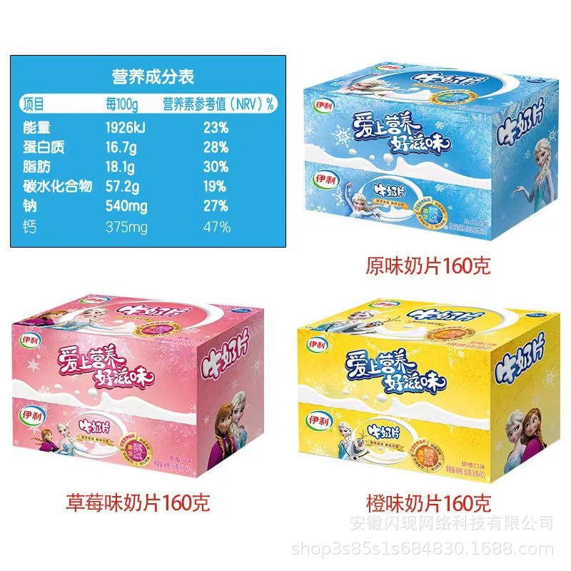 Yili milk slices 160g boxed 10 plates original strawberry sweet orange flavor children's best-selling snack milk slices supermarket