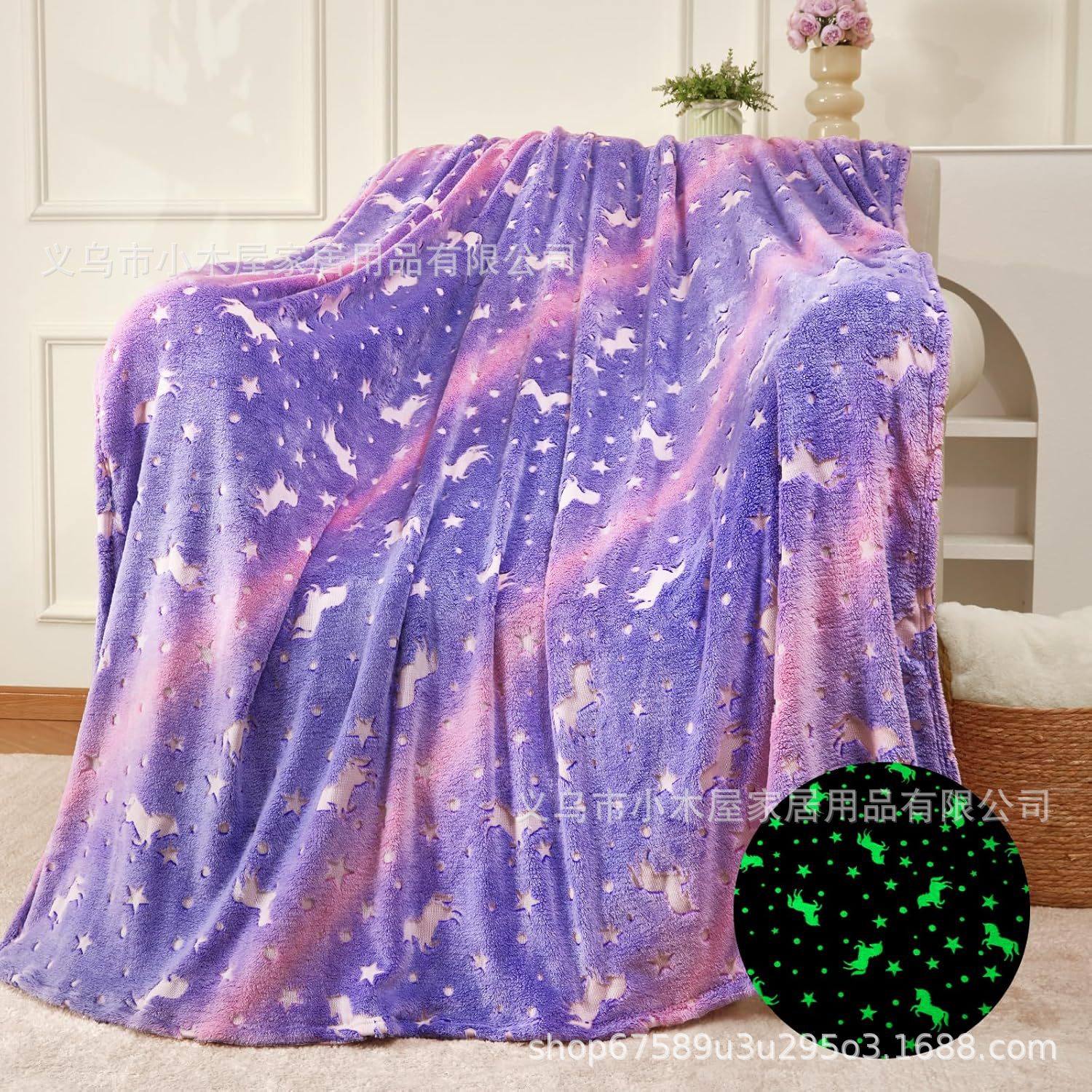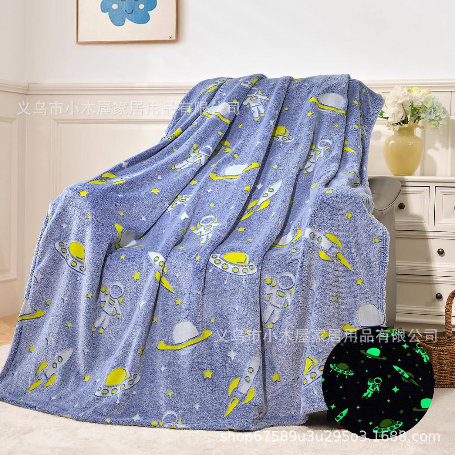 Ready Stock Flannel Blanket Nap Blanket Glow-In-The-Dark Blanket Cartoon Blanket Blanket Halloween Christmas Glow-In-The-Dark Blanket Wholesale