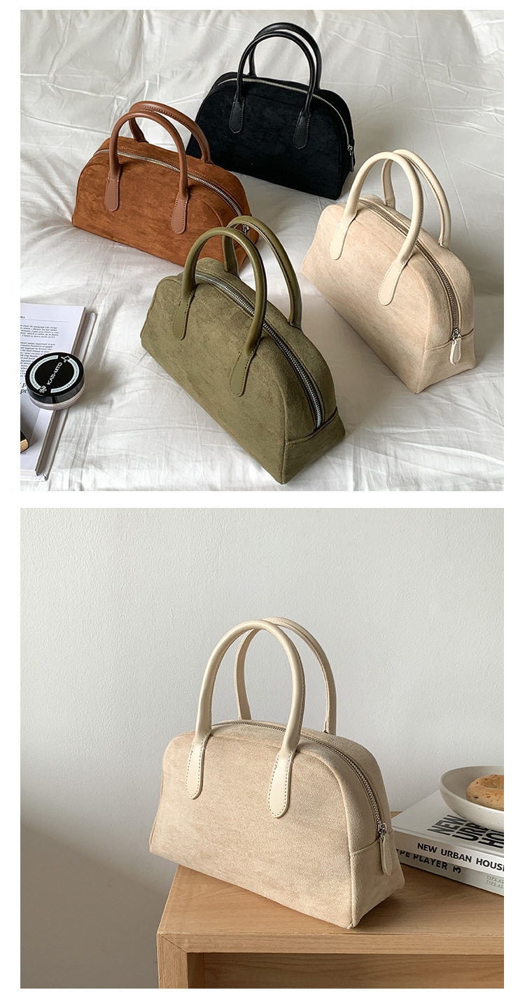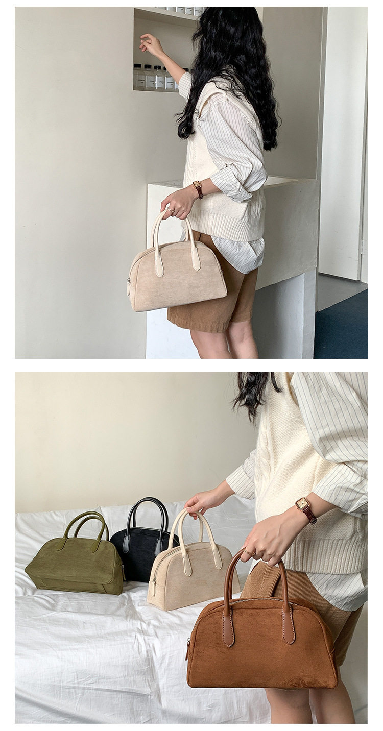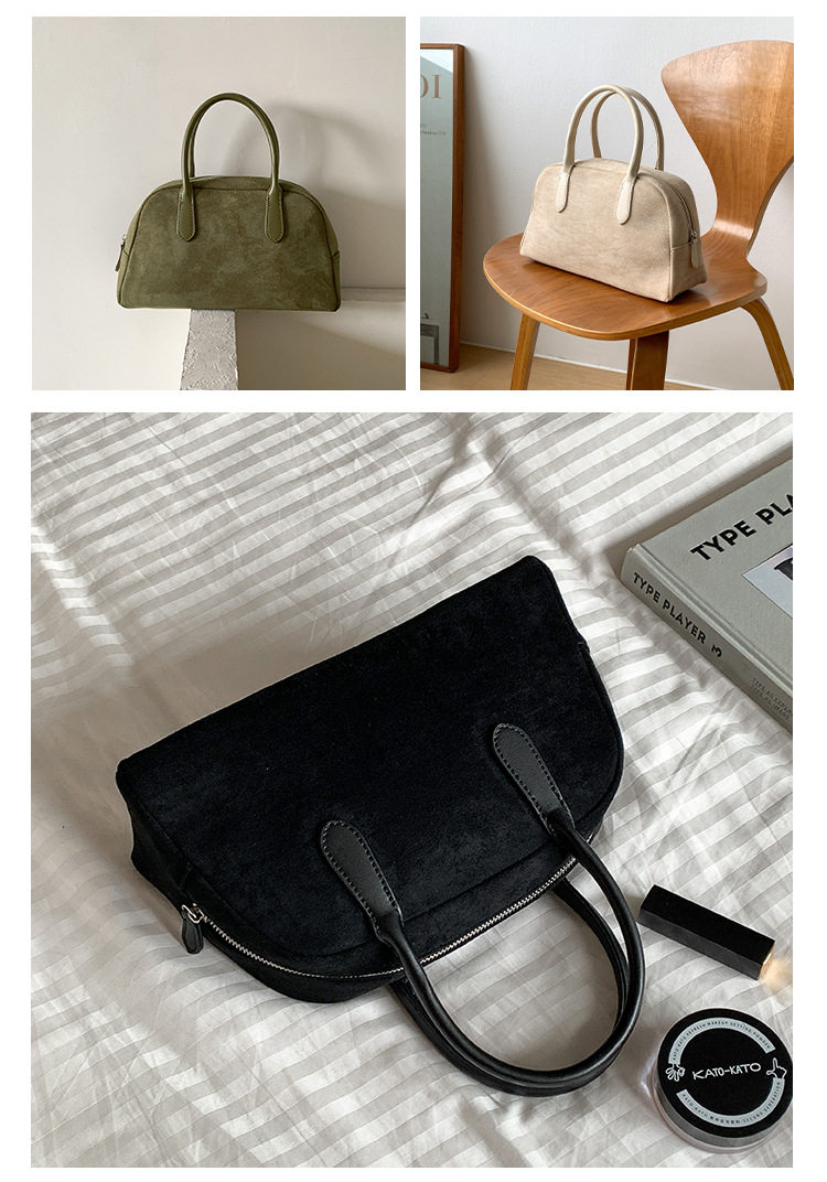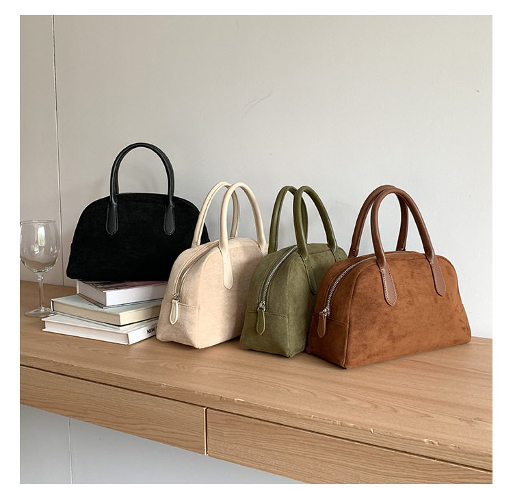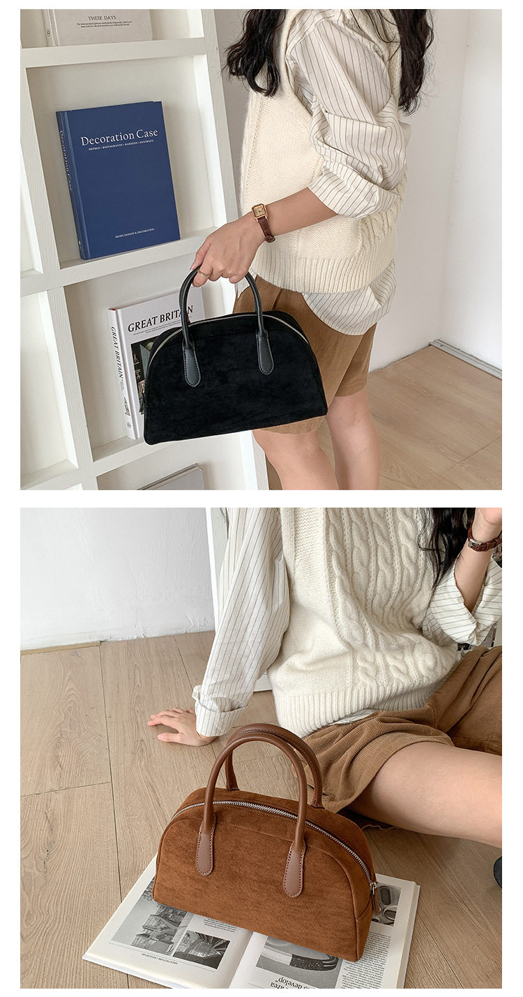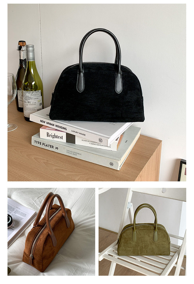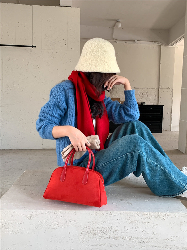 South Korea bag women's bag autumn and winter suede handbag women's large capacity niche retro plush hand carrying Boston bag