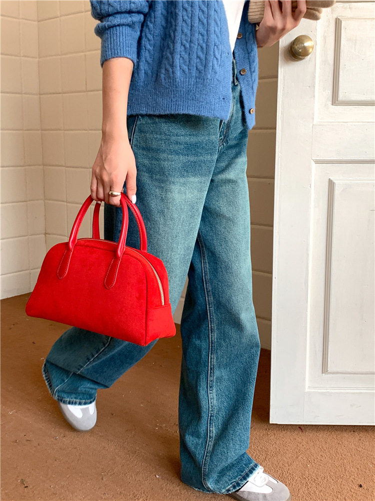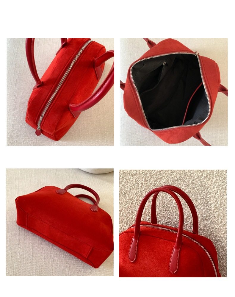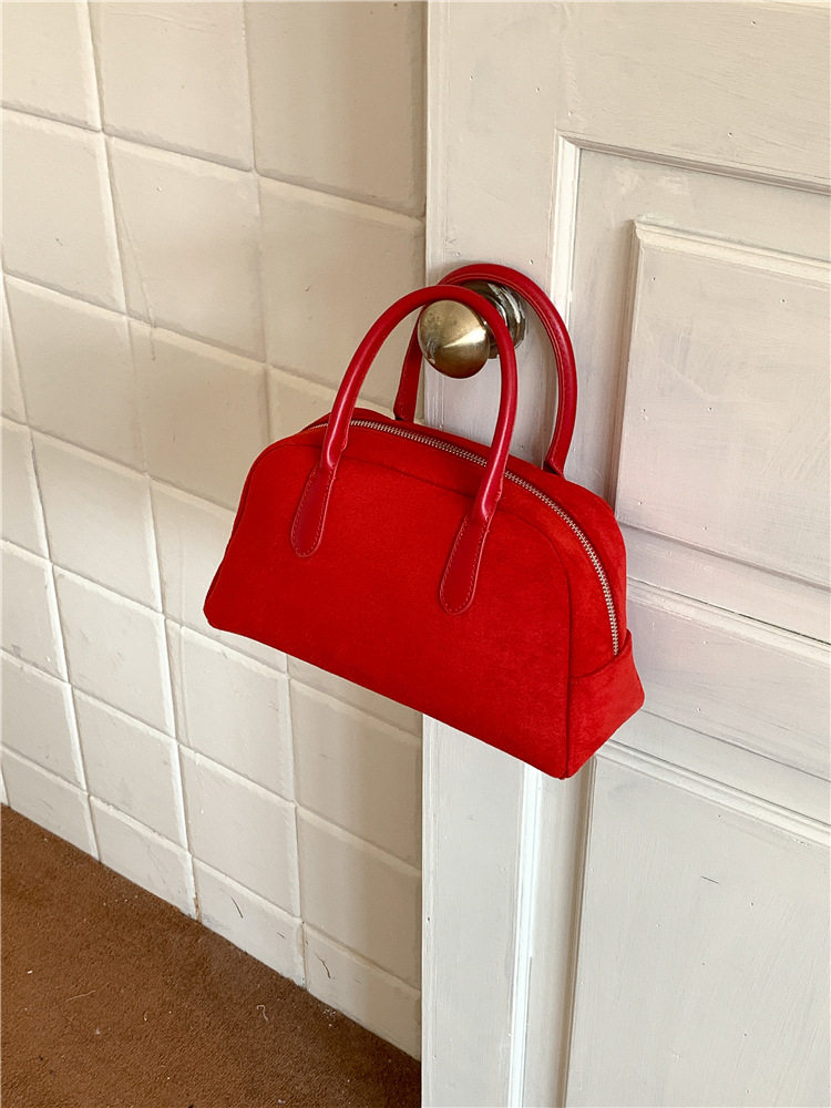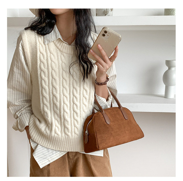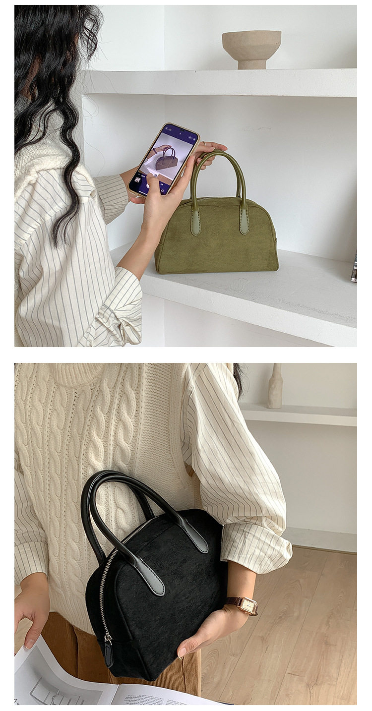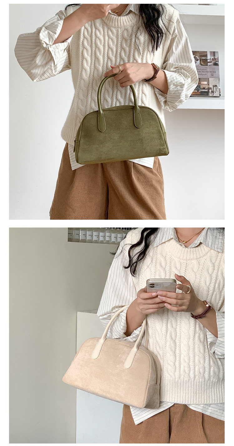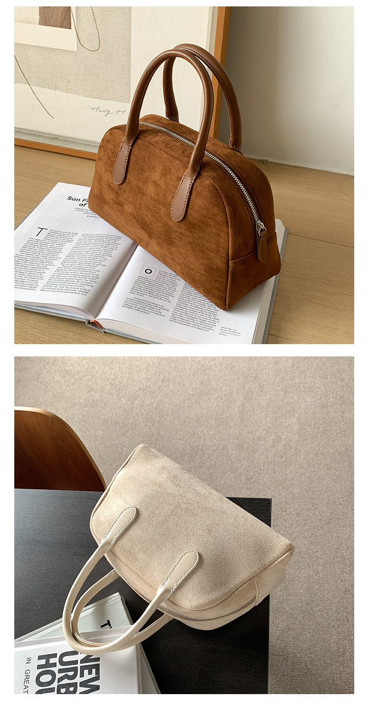 South Korea bag women's bag autumn and winter suede handbag women's large capacity niche retro plush hand carrying Boston bag