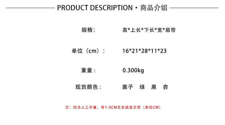 | Style | Maillard bag, red bag, brown bag |