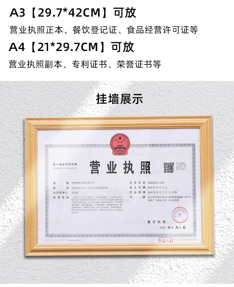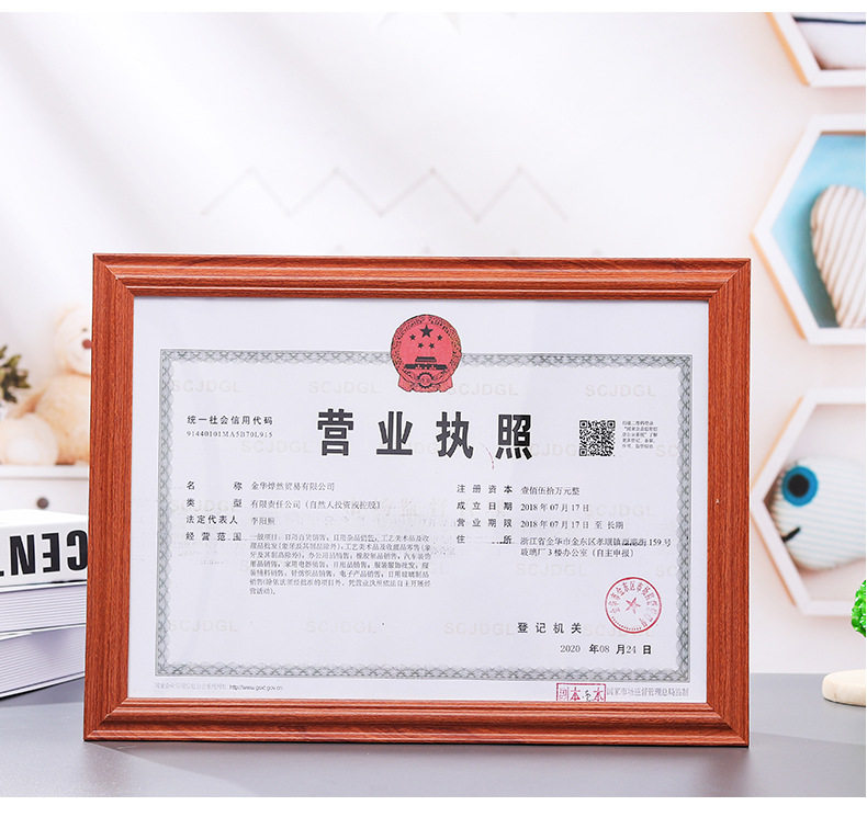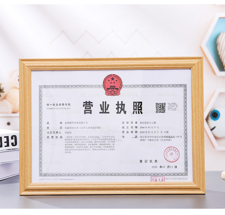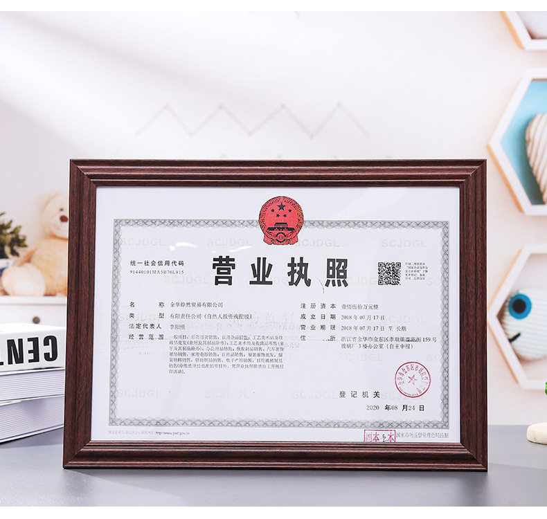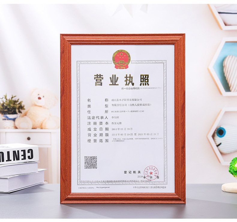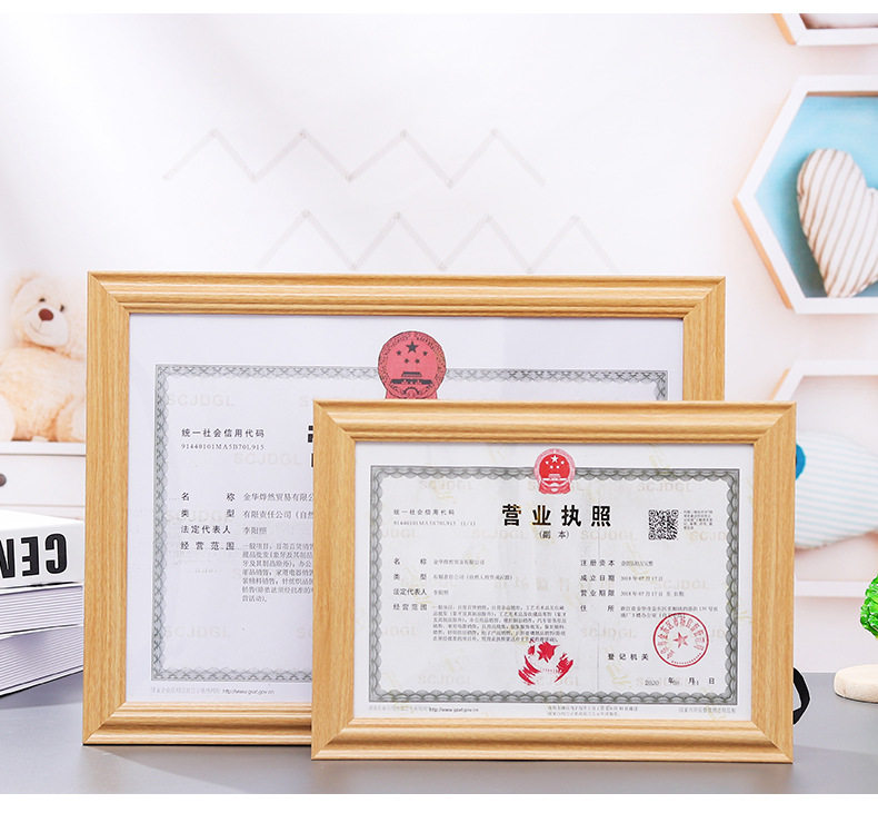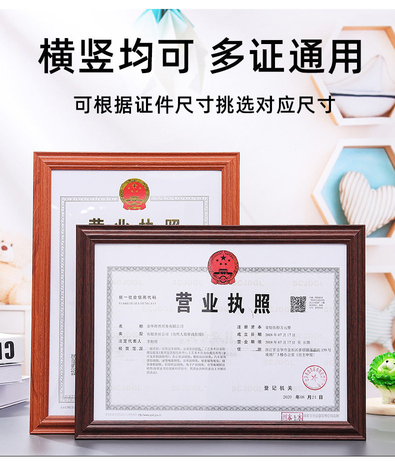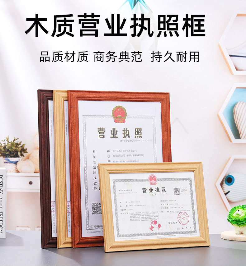 Business license frame certificate frame individual industrial and commercial household original frame plastic wooden three-in-one horizontal version Company photo frame